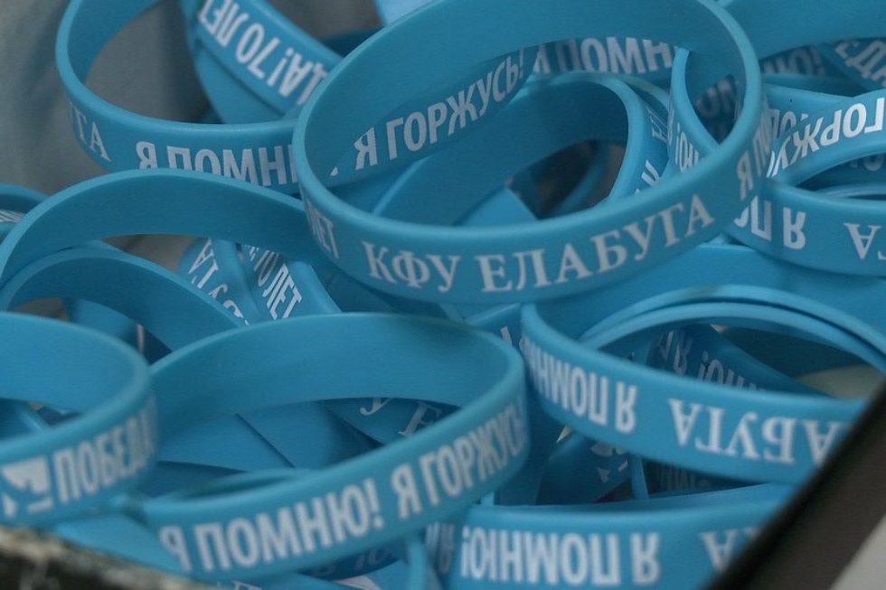 В рамках акции были изготовлены оригинальные браслеты, которые с сегодняшнего дня реализуются среди студентов, преподавателей и сотрудников института. По словам организаторов, вырученные средства пойдут на поддержку ветеранов вуза и открытие мемориальной доски в память о преподавателях института, кавалерах ордена Славы Рифкате Гайнуллине и Владимире Мясникове.