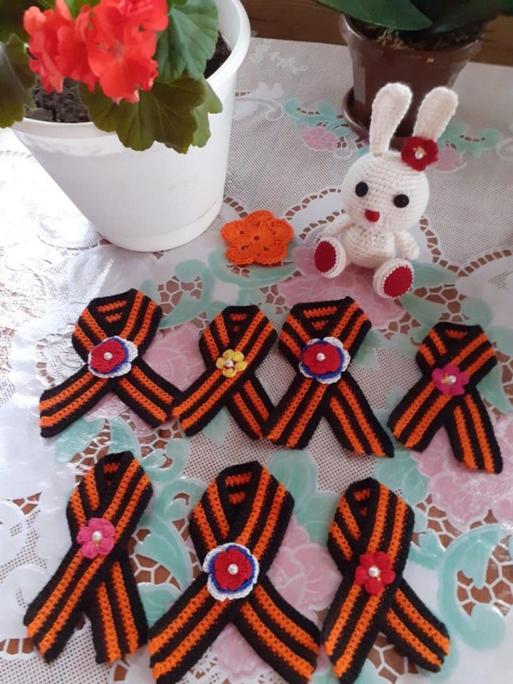 Эти Георгиевские ленты, ставшие символом воинской славы, она вяжет крючком. Каждую свою работу Зульфира ханум посвятила памяти своего деда Ямалиева Ибрагима, погибшего в Великой Отечественной войне.