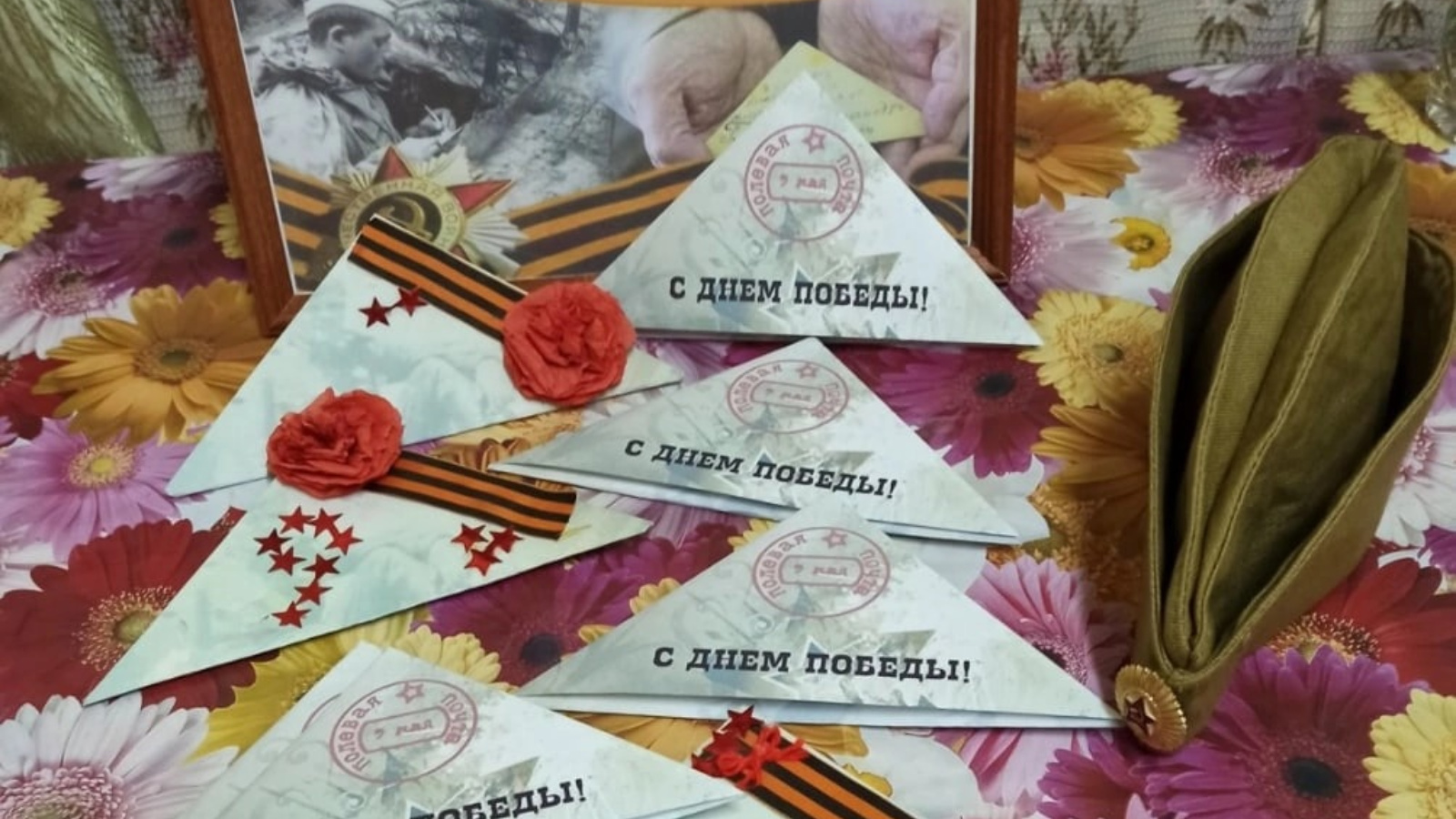 Ребятам рассказали о том какими были фронтовые письма в годы войны, научили складывать фронтовое письмо и украсили его в виде открытки.