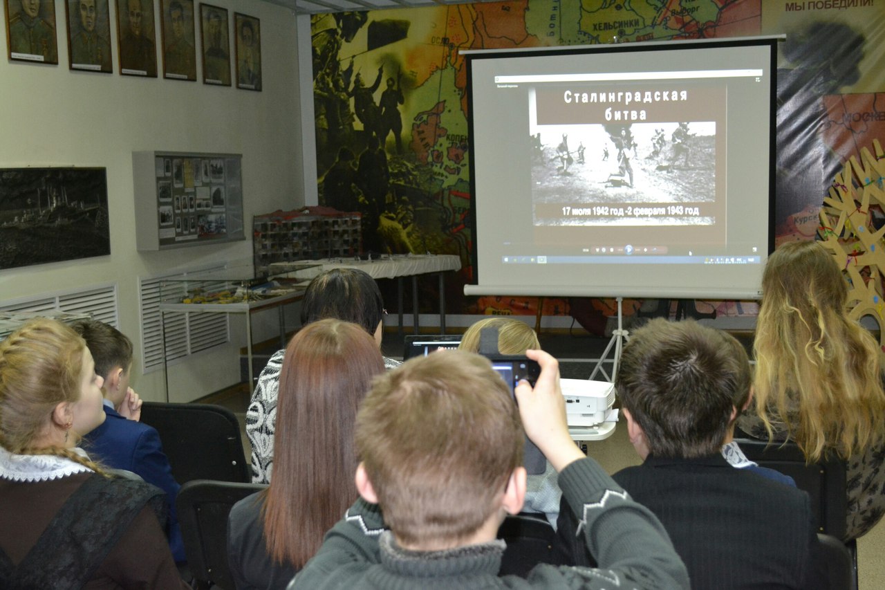 Ученики школы № 17 города Зеленодольска 8 февраля побывали в Музее историко- культурного наследия на патриотическом мероприятии посвященном битве при Сталинграде. Ребята смогли увидеть макет дома Павлова, фотографии, а так же просмотрели слайд фильм и прослушали лекцию.