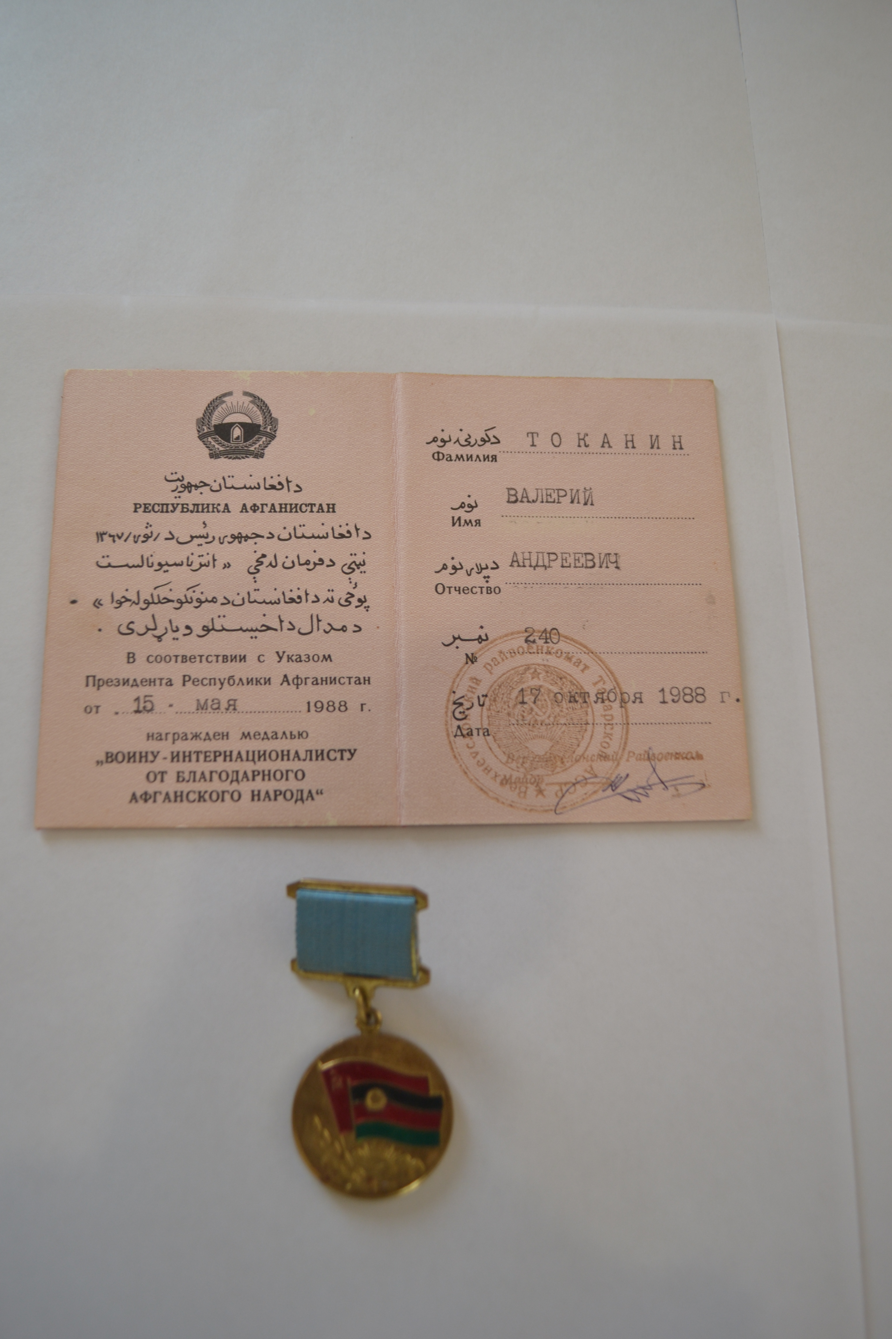 Сегодня в рамках 70- летия Победы прошло торжественное мероприятие по передаче в дар музея ордена Красной Звезды участника боевых действий в Афганистане, воина- интернационалиста Токанина Валерия Андреевича.