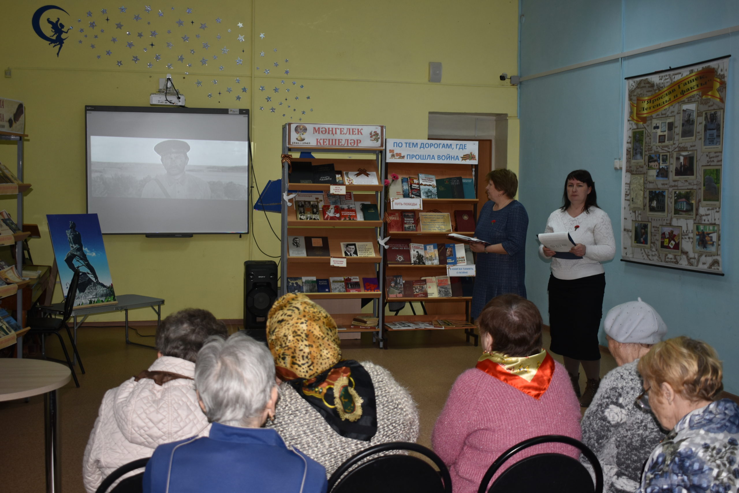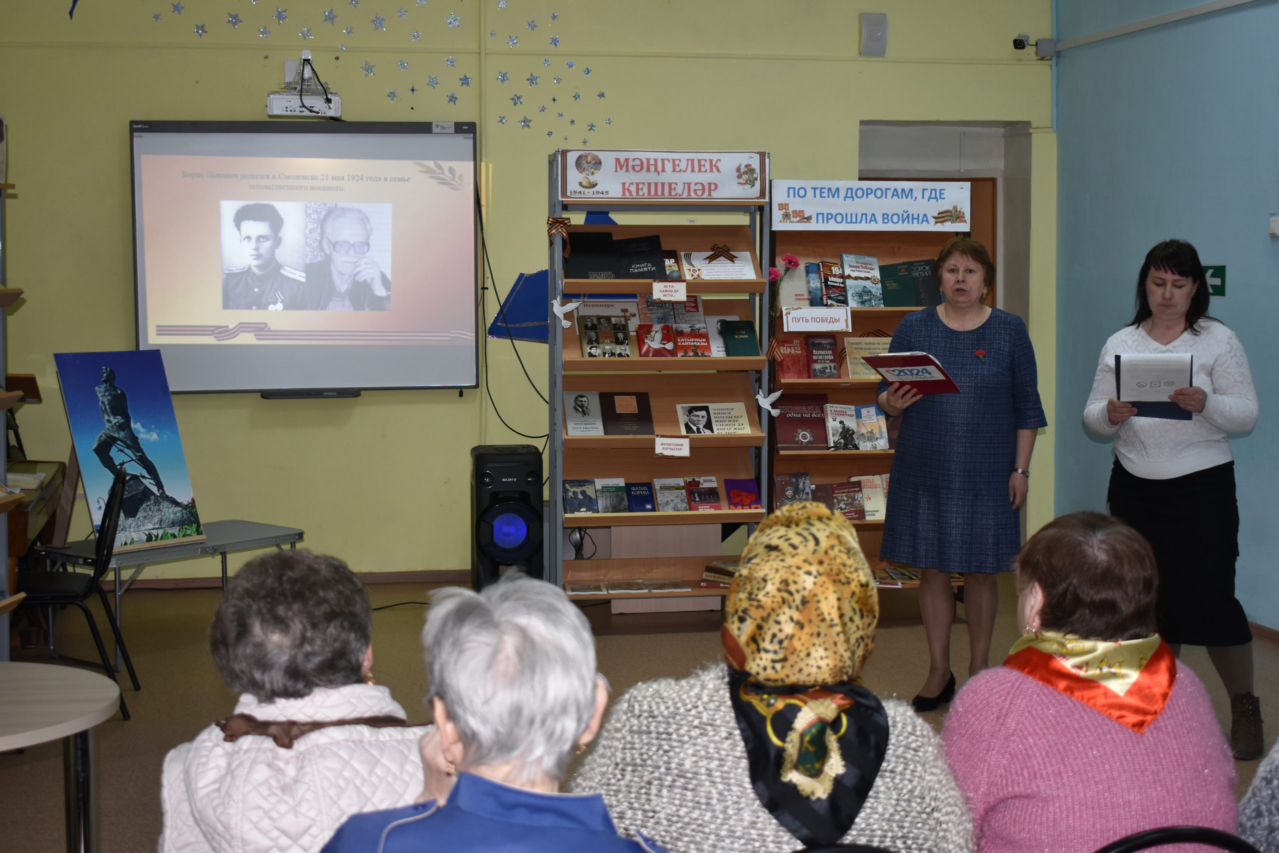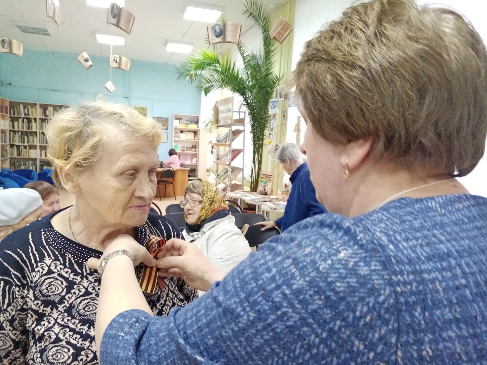 В рамках работы клуба «Ветеран» для его участников сотрудники центральной библиотеки провели мероприятие «По дорогам памяти», приуроченное к празднику Великой Победы. Библиотекари рассказали о советских писателях и композиторах, участниках боевых действий на фронтах Великой Отечественной войны. У каждого из них была своя война и свое видение произошедшего. Они оставили страшные воспоминания о тех роковых для страны событиях. Ведущие прочитали стихи Булата Окуджавы, Юлии Друниной, познакомили присутствующих с творчеством Бориса Васильева. Рассказали о юбиляре года Юрии Левитане – дикторе Всесоюзного радио, который читал сводки Совинформбюро и приказы Верховного Главнокомандующего И. Сталина во время Великой Отечественной войны. Прозвучали песни Марка Фрадкина «Дорога на Берлин», «Случайный вальс», «Песня о Днепре» и песня Булата Окуджавы из фильма «Белорусский вокзал» «Десятый наш десантный батальон». Многие из присутствующих принесли фотографии своих близких — участников войны 1941-1945 годов, которые были размещены на стенде памяти героев бессмертного полка в фойе библиотеки. По окончании встречи всем участникам были вручены георгиевские ленточки.