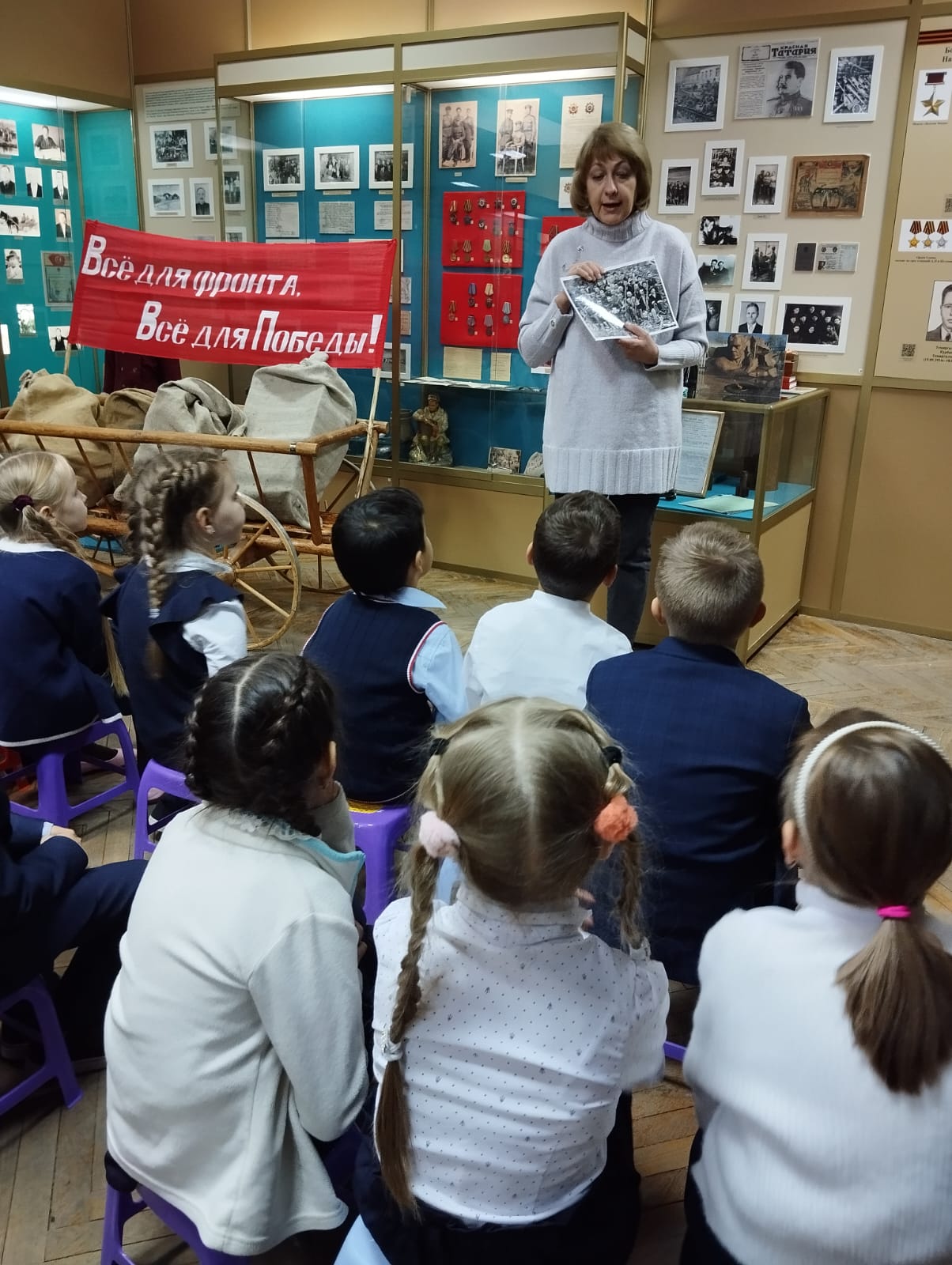 В Альметьевском краеведческом музее проводятся тематические экскурсии «Поклонимся Великим тем годам!», на которых студентам и школьникам рассказывают о подвигах героев-земляков в годы Великой Отечественной войны 1941-1945гг., нелёгкой жизни и ратном труде тружеников тыла на родной земле. Задача сотрудников музея – донести до молодых людей то, что мы является потомками великого поколения людей, сумевших своим мужеством и героизмом отстоять страну. Это их кровь течёт в наших жилах, и наша память об их Победе – лучший подарок и всем ныне живущим ветеранам, и тем, кого уже нет с нами. В память о погибших зажигается символичная свеча Памяти, подаренная музею поисковым отрядом «Десант», сделанная из настоящего снаряда, разорвавшегося на полях Сталинградской битвы.