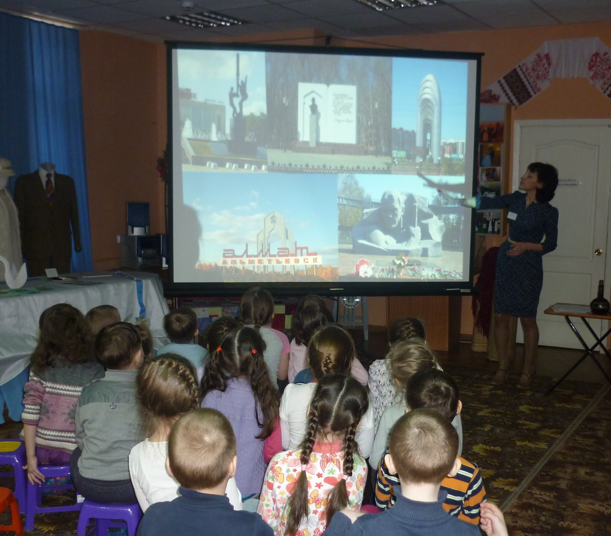 В целях сохранения памяти о годах войны в музее был разработан ряд мероприятий. Подготовлены музейные уроки для аудитории всех возрастов. Для детей подготовительных групп ДОУ и младшего школьного возраста – Виртуальная экскурсия по городу “Памятники города Альметьевск”, для детей среднего школьного возраста – музейный урок “Мемориалы памяти”, для старшеклассников, студентов и взрослой аудитории лекция – презентация – “Священная война” . Мероприятия сопровождаются демонстрированием на экране фотографий, документов, хроникальных записей. В повествовании делается акцент на вклад альметьевцев, татарстанцев в великую Победу.