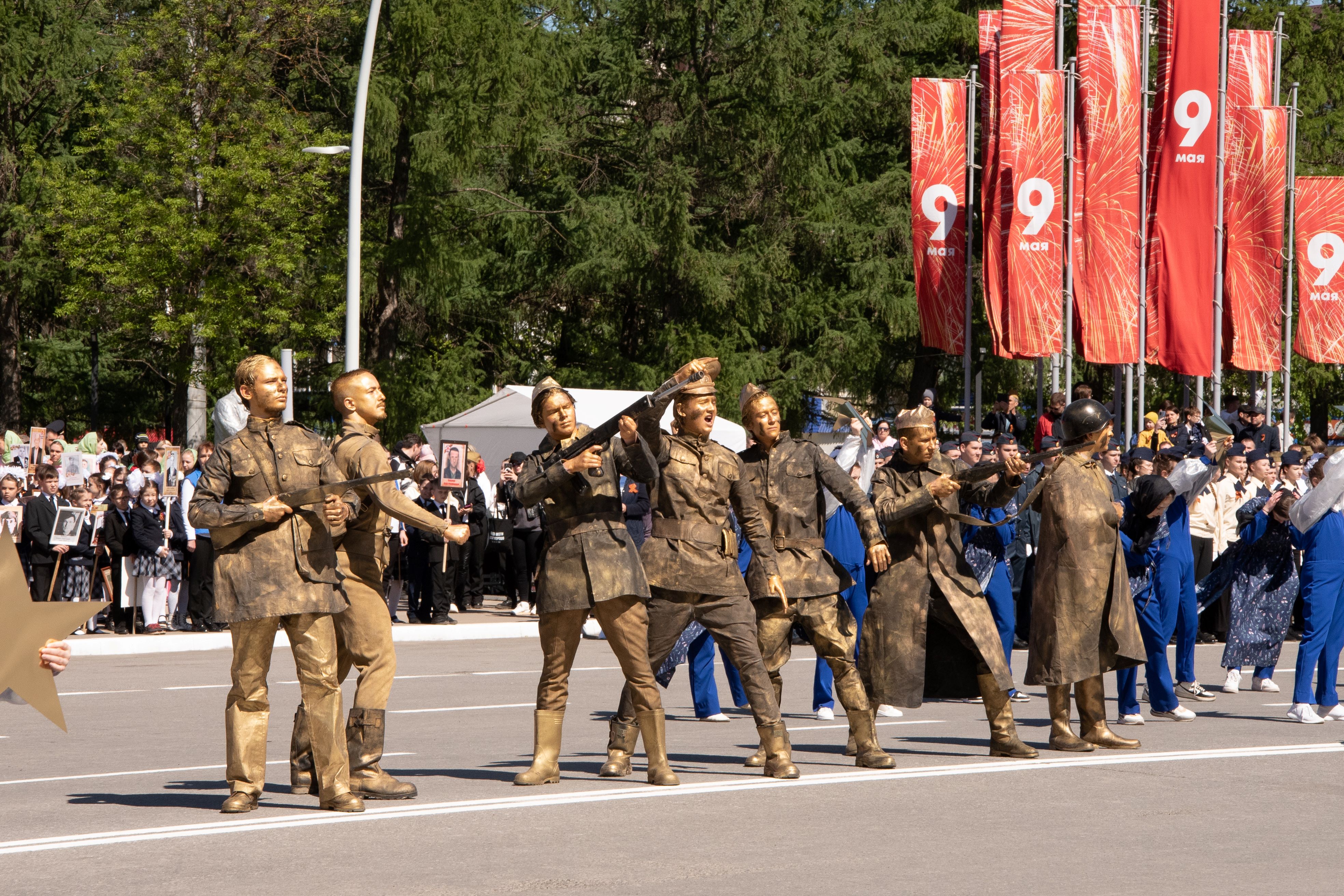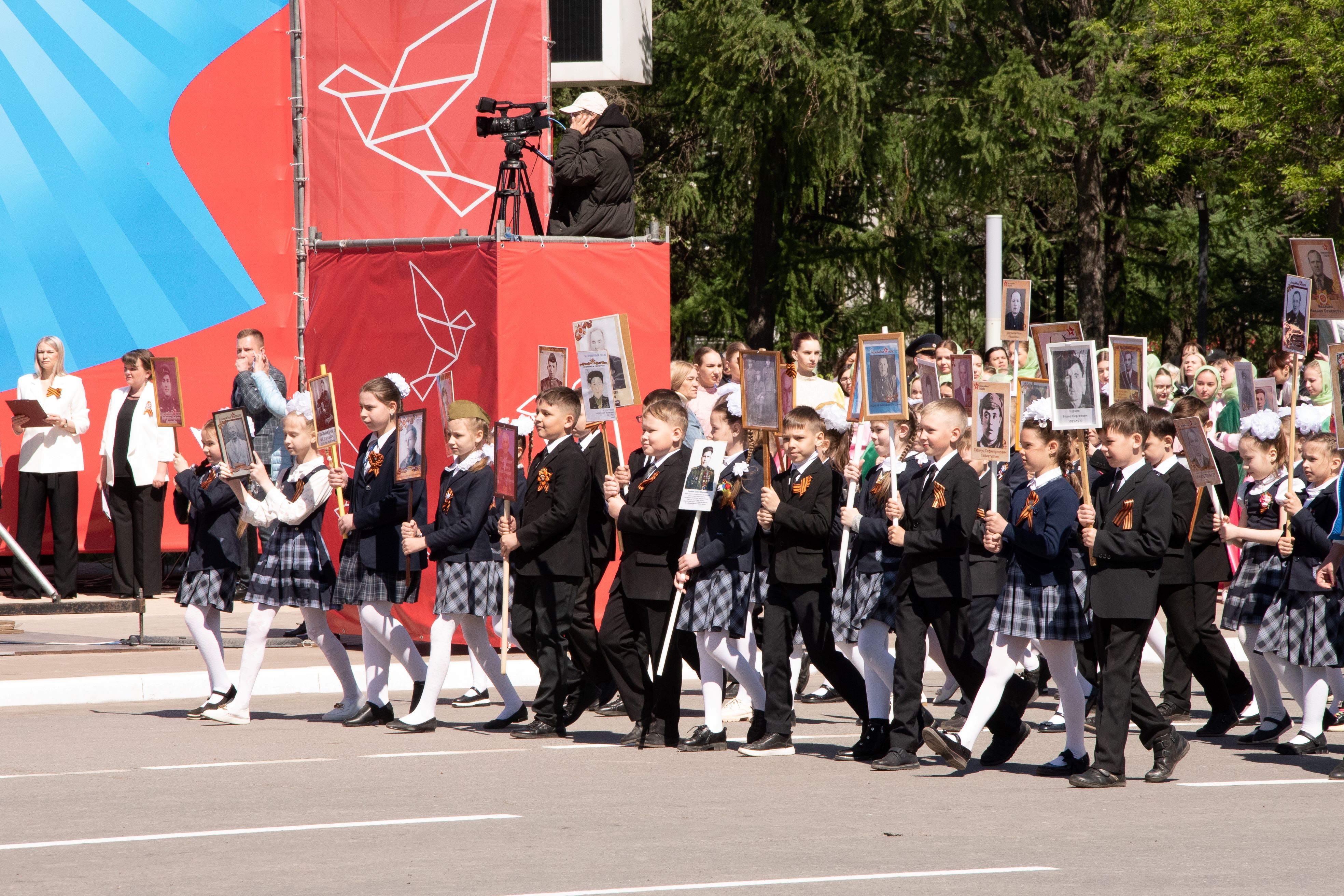 На площади Дома техники Бугульмы состоялась праздничная программа «Сквозь века звенит Победа!» при участии фронтовиков, тружеников тыла, участников специальной военной операции, бугульминцев и гостей города. Маршем по площади прошли более тысячи бугульминцев – это ученики всех городских школ, студенты, военнослужащие и сотрудники силовых ведомств.