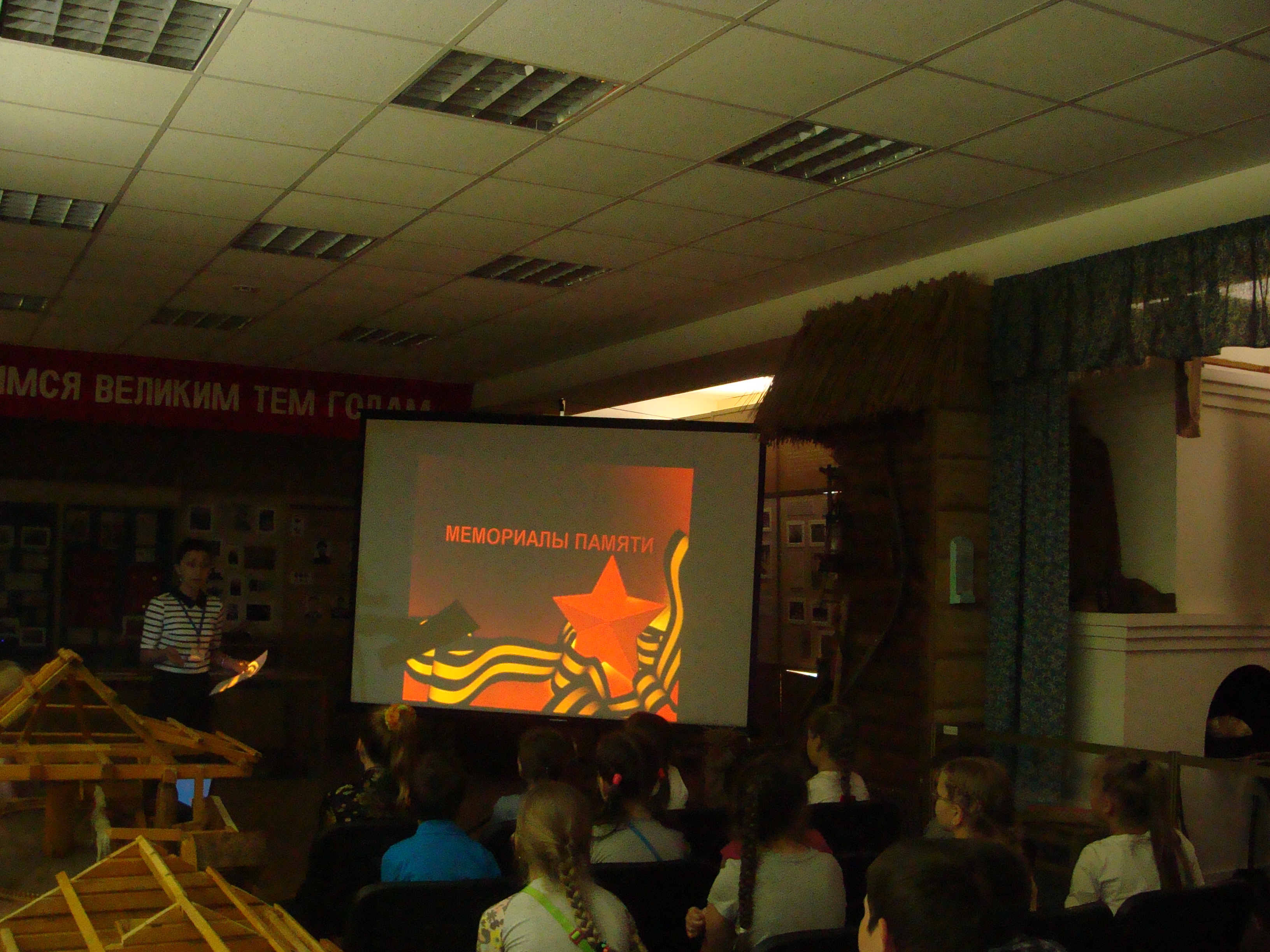 Для учеников младших классов был проведён музейный урок «Виртуальная экскурсия по городу»,в ходе которой дети познакомились с достопримечательностями Альметьевска. Особое внимание было уделено памятникам, посвящённым Великой Отечественной войне 1941 – 1945 годов. Ученики средних классовпознакомились с Мемориалами памяти, расположенными на территории нашего района. Узнали о Героях войны - наших земляках. Почтили минутой молчания память воинов, павших в годы Великой Отечественной войны.