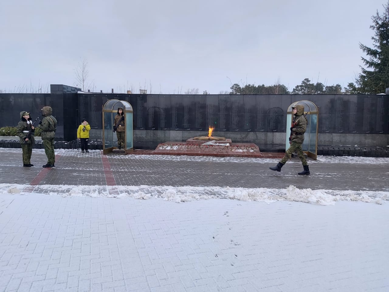 День 6. Подошло к концу несение Вахты Памяти у Вечного огня на Посту №1. 18 января ребята передавали очередь следующей школе №8, которая заступила 20 января. Ребята показали отработанный навык будущим постовцам. Также ребята зачитывали свои сочинения о впечатления и времени проведенном на Посту №1.
