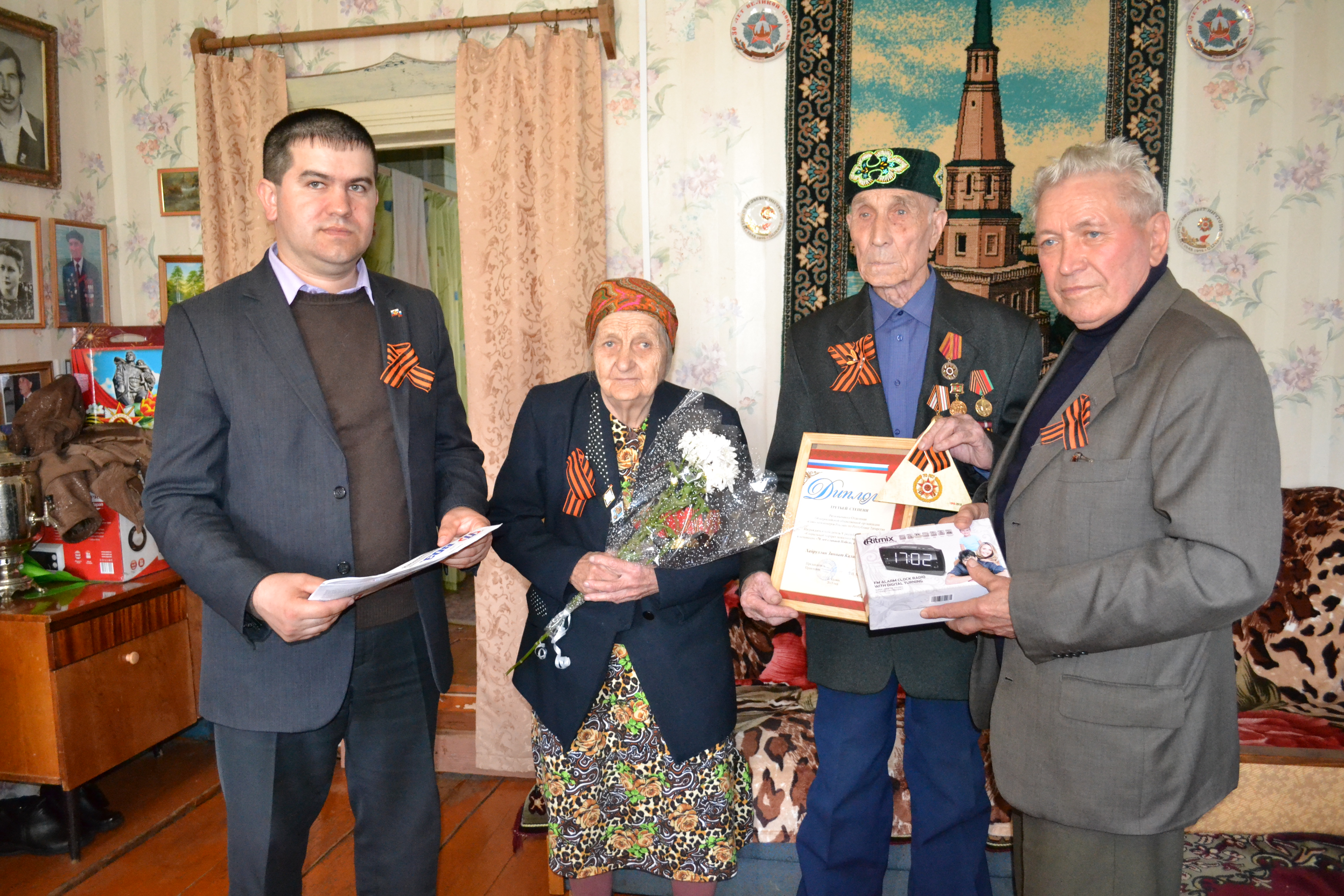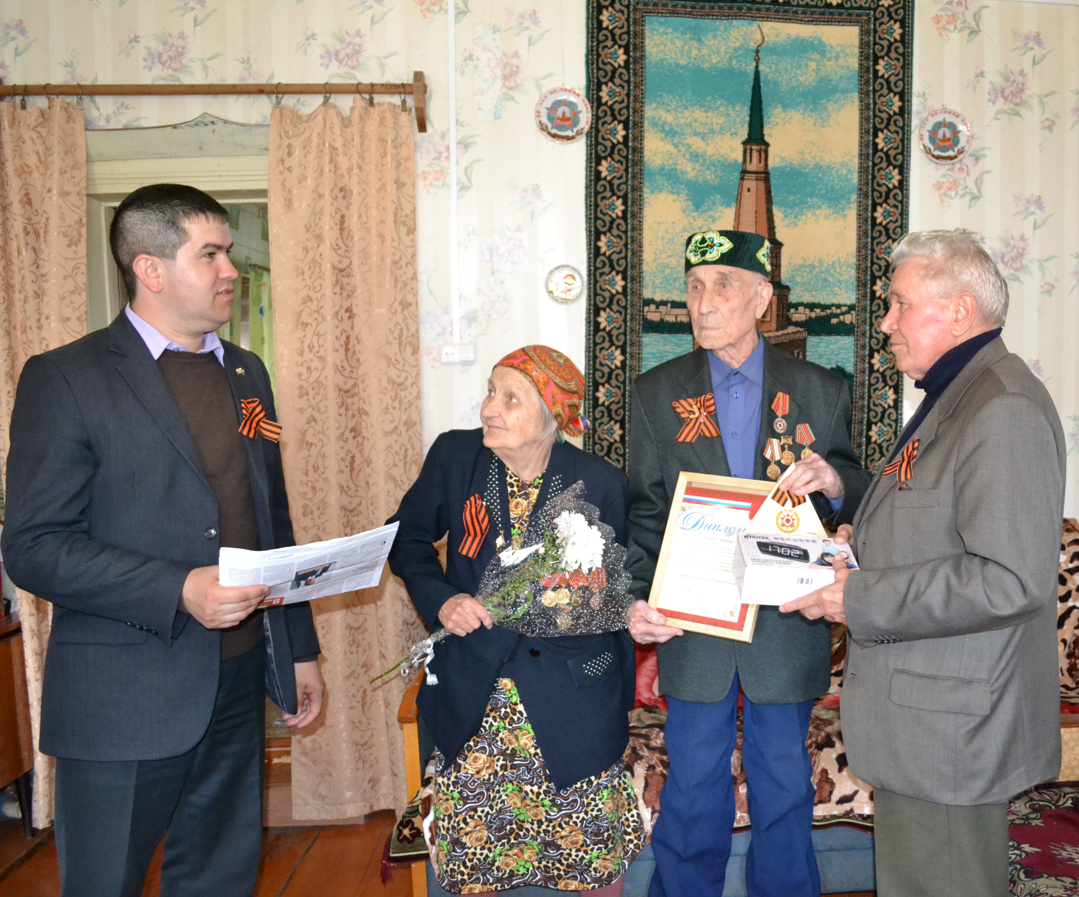 Делегации во главе руководителя Пенсионного фонда района Шамиля Гаффарова совместно с председателем Союза пенсионеров Калимуллина Фарита Калимулловича, (заслуженного работника культуры ТАССР (1989 г.),который родился 10 августа 1939 г. в д. Старые Енали Апастовского р-на. Окончил Казанский государственный университет, Саратовскую высшую партийную школу. Трудовую деятельность начал шахтером. В 1961-1964 гг. служил в рядах Советской Армии. В дальнейшем работал в аппарате Апастовского райкома ВЛКСМ, был заведующим районным отделом культуры, заместителем председателя исполнительного комитета Апастовского районного Совета, инструктором, заведующим отделом пропаганды и агитации Апастовского РК КПСС, заведующим отделом Пенсионного фонда РФ по Апастовскому р-ну. Награжден медалью «За доблестный труд в ознаменование 100-летия со дня рождения В.И.Ленина») поздравили ветерана с праздником, вручали подарки.