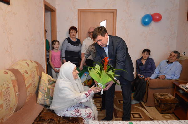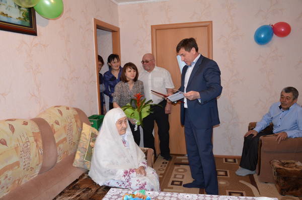 Руководитель Исполнительного комитета Азнакаевского муниципального района А.Х.Шамсутдинов поздравил Харисову Зулхабиру Исламовну с 90-летним юбилеем
