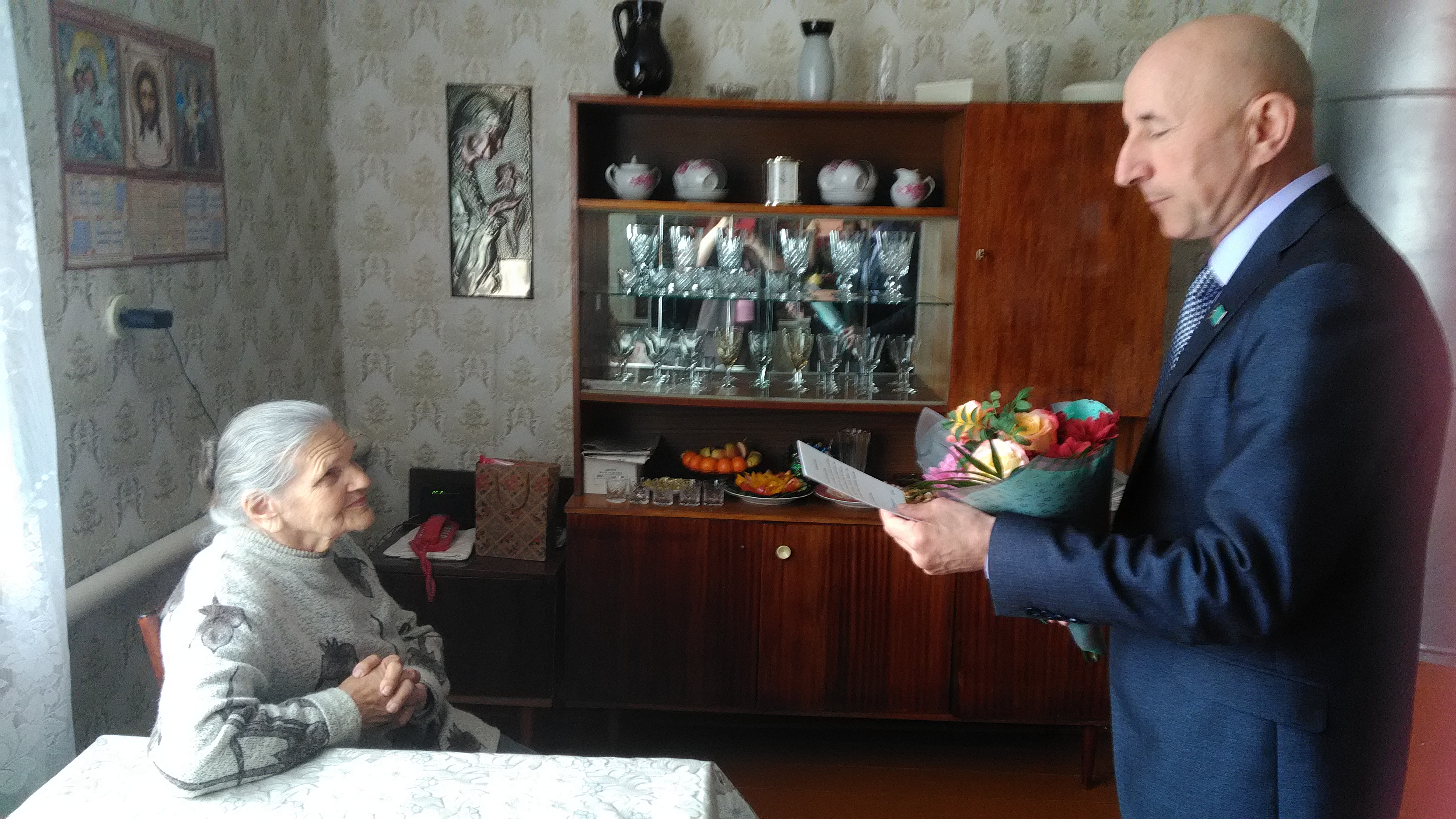 Заместитель Главы Спасского муниципального района РТ С.И. Тюнёв поздравил с 90-летием со дня рождения Князеву Анну Яковлевну и вручил поздравительную открытку от Президента Российской Федерации В.В. Путина, Главы Спасского муниципального района К.А. Нугаева, продуктовый набор, цветы. Также юбиляршу поздравили председатель совета ветеранов Т.Н. Бурумова, сотрудники социальной защиты, родные и близкие.