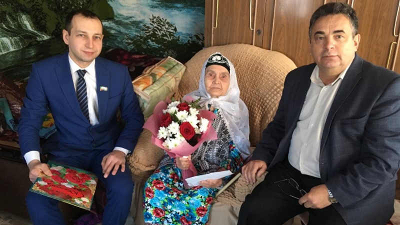 Райхане Тахавиевне были вручены цветы, памятные подарки и поздравления от Президента Российской Федерации В.В.Путина.