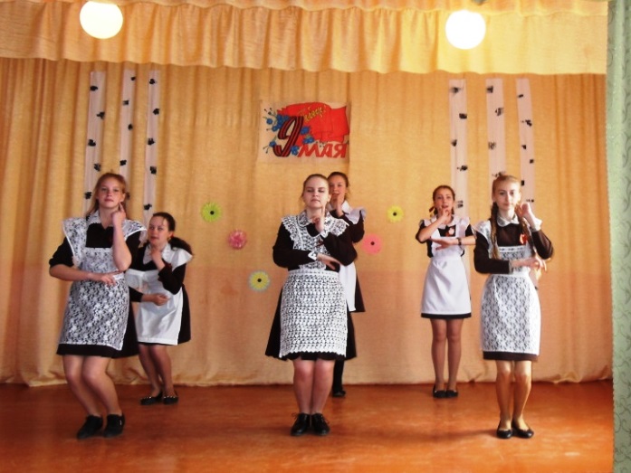 Праздничный концерт был поставлен учащимися Азевской средней общеобразовательной школы Агрызского муниципального района. В их исполнении были представлены художественные номера: стихи, танцы песни военных лет.