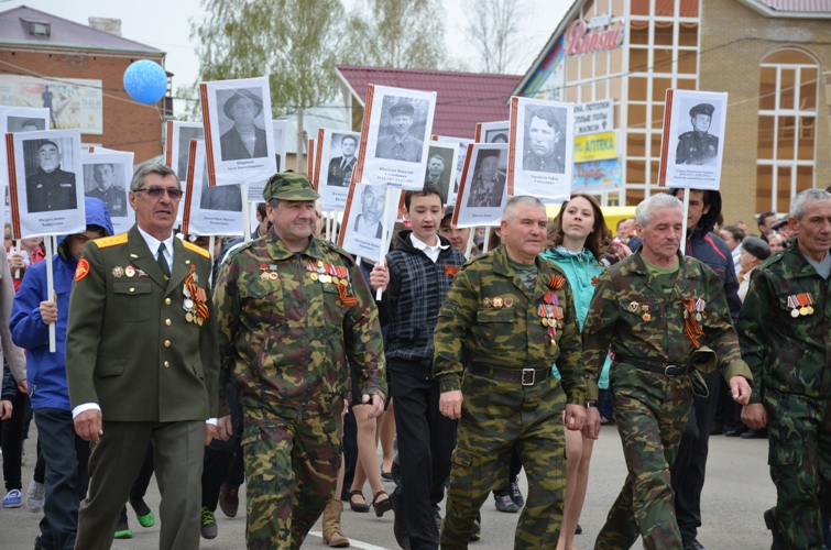К площади подходят школьники, присоединившиеся к Всероссийской акции «Бессмертный полк». У каждого в руках – портреты агрызцев-участников войны. Многие участники торжества ищут глазами среди 250 лиц своих близких. А в душе – гордость за батыров: отцов, матерей, родственников.