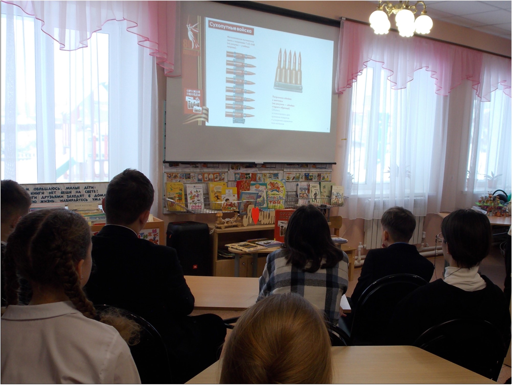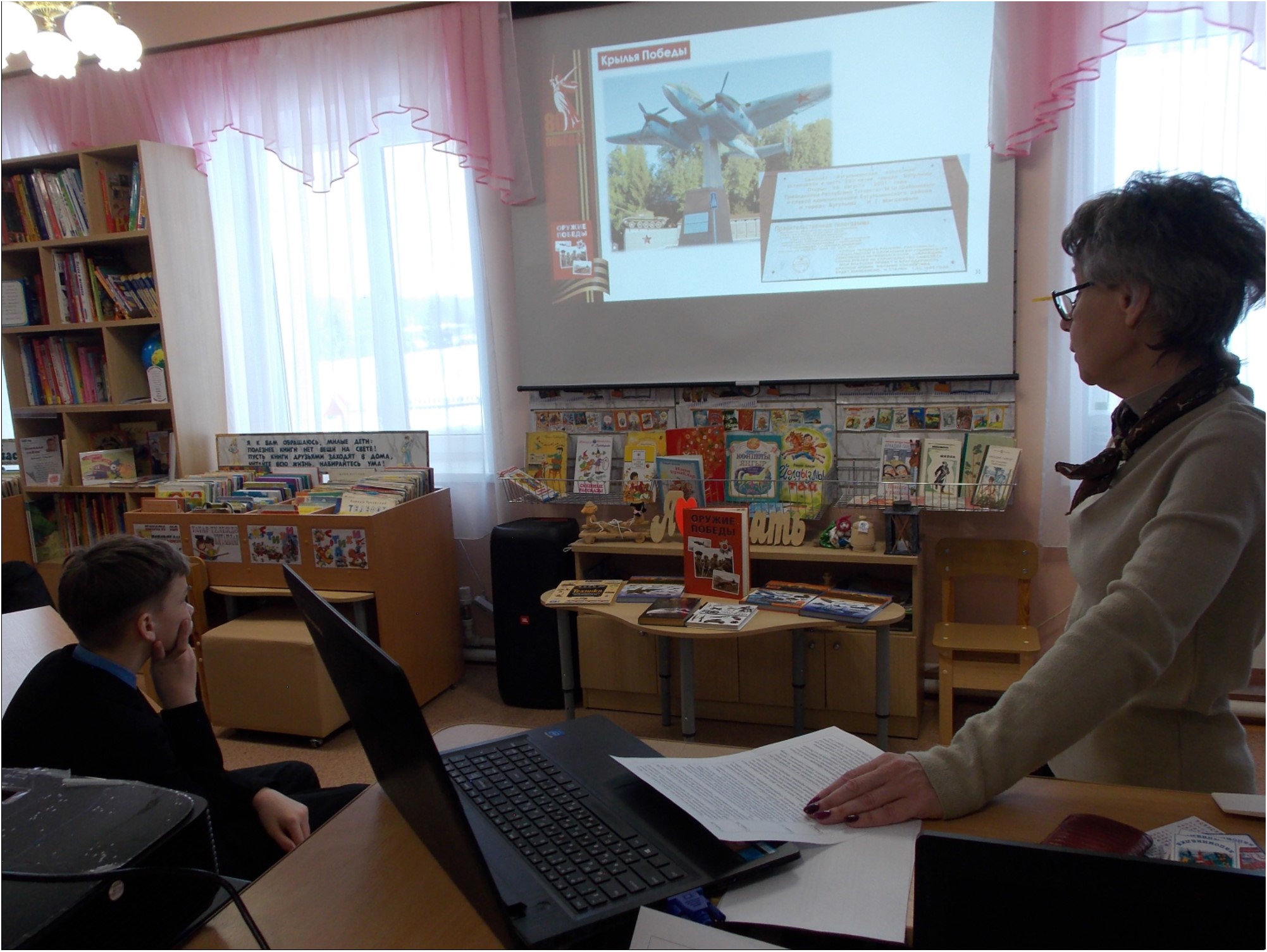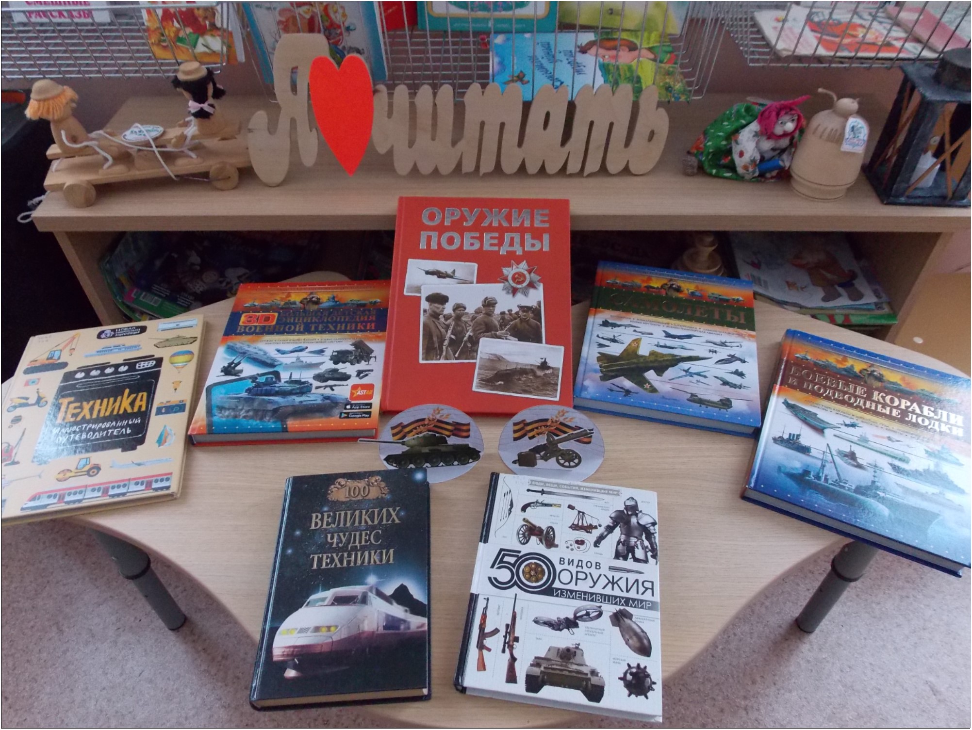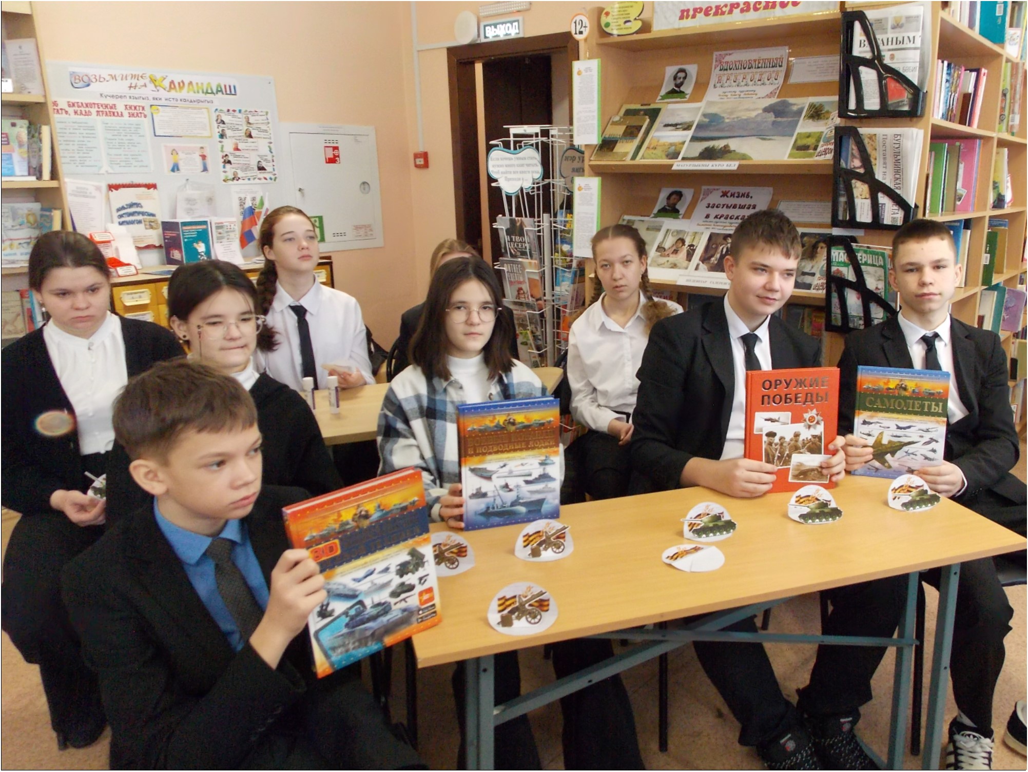 В Зеленорощинской сельской библиотеке Бугульминского района в рамках празднования Года защитника Отечества для читателей состоялась премьера книги Виктора Бакурского «Оружие Победы», в которой рассказывается о наиболее известных образцах отечественного вооружения и военной техники, сыгравших важную роль в Великой Отечественной войне и ставших символами Победы. Благодаря прекрасным иллюстрациям, пользователи смогли ознакомиться с архивными документами и фотографиями, что позволило испытать чувство гордости за разработки российских конструкторов и инженеров, повлиявших на ход Великой Отечественной войны и всей мировой истории. В заключение читатели смастерили объемную композицию из бумаги: на фоне георгиевской ленты расположили орудия войны – танк Т-34 и пулемёт «Максим».