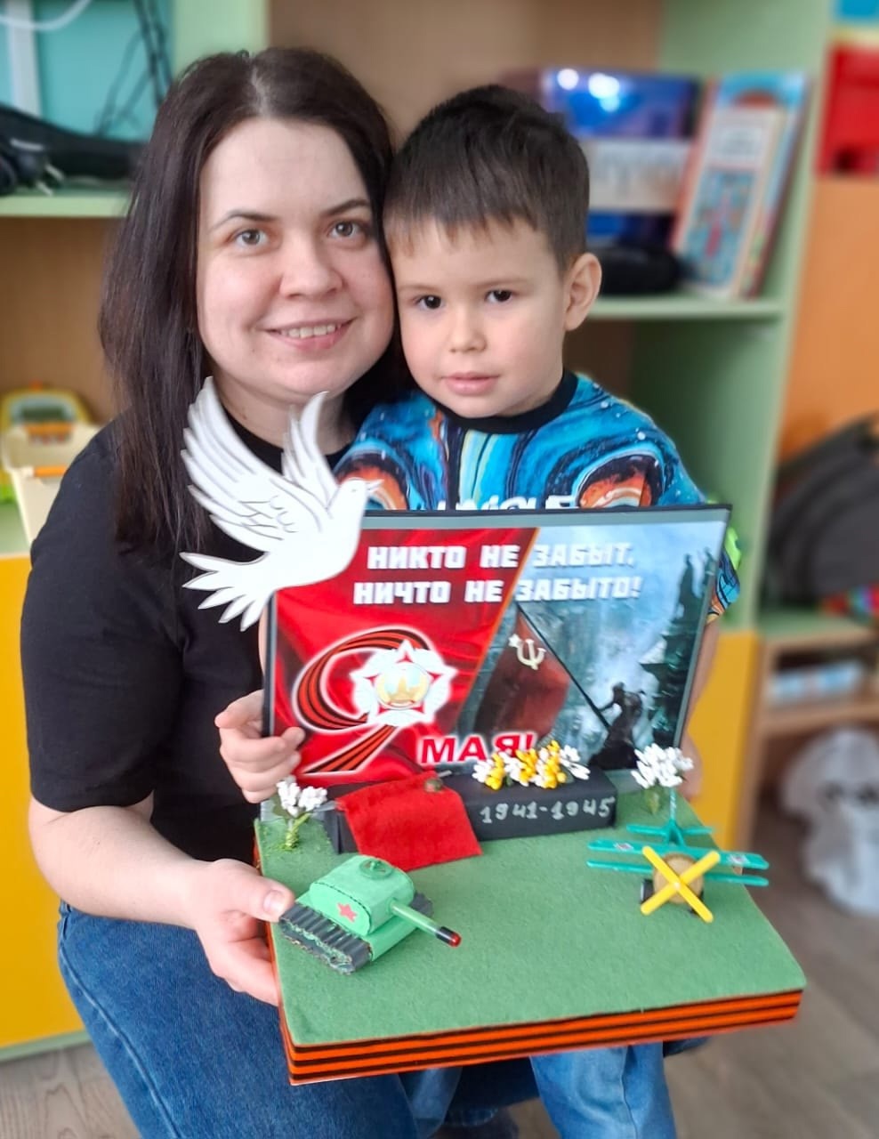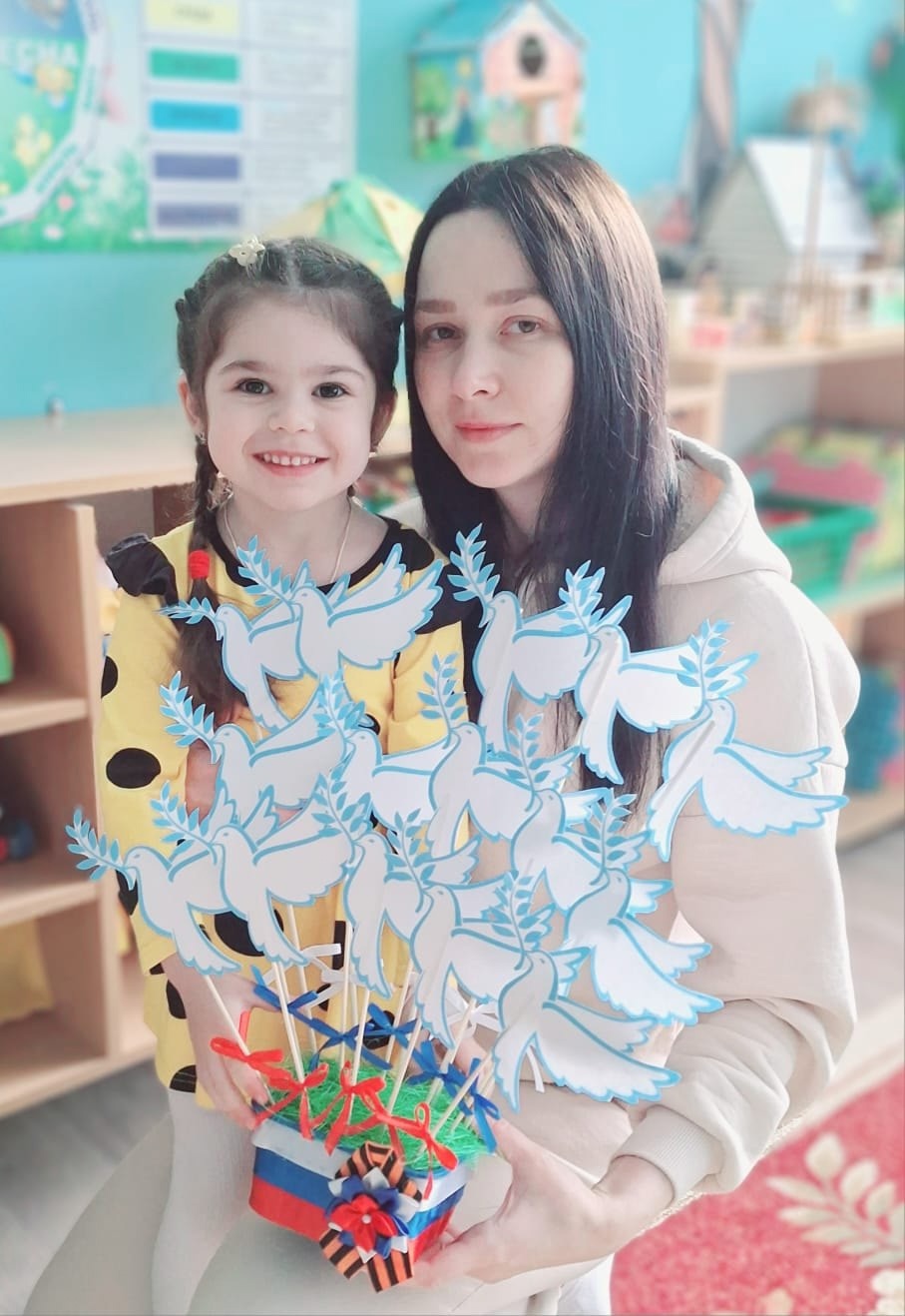 Во 2 младшей группе "Алые паруса" ДОУ № 35 "Дельфин" мама Хафизова Ирина Владимировна и сын Назар, мама Мелкумова Екатерина Сергеевна и дочка Меланья, мама Залялиева Анастасия Олеговна и дочка Мария присоединяются к акции "Приближаем Победу".