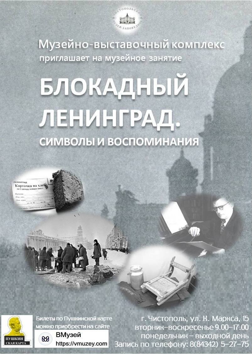 Музейно-выставочный комплекс Чистопольского государственного музея-заповедника приглашает учащихся на занятие «Блокадный Ленинград. Символы и воспоминания», посвященное 80-й годовщине полного освобождения Ленинграда от фашистской блокады.