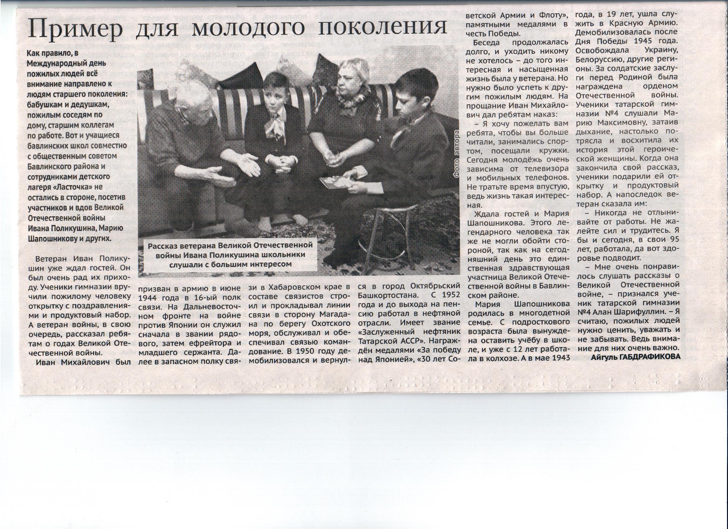Пример для молодого поколения Корпункт: Бавлинский Опубликовано 12 ноября, 2019 - 10:46 пользователем Петрова Снежана