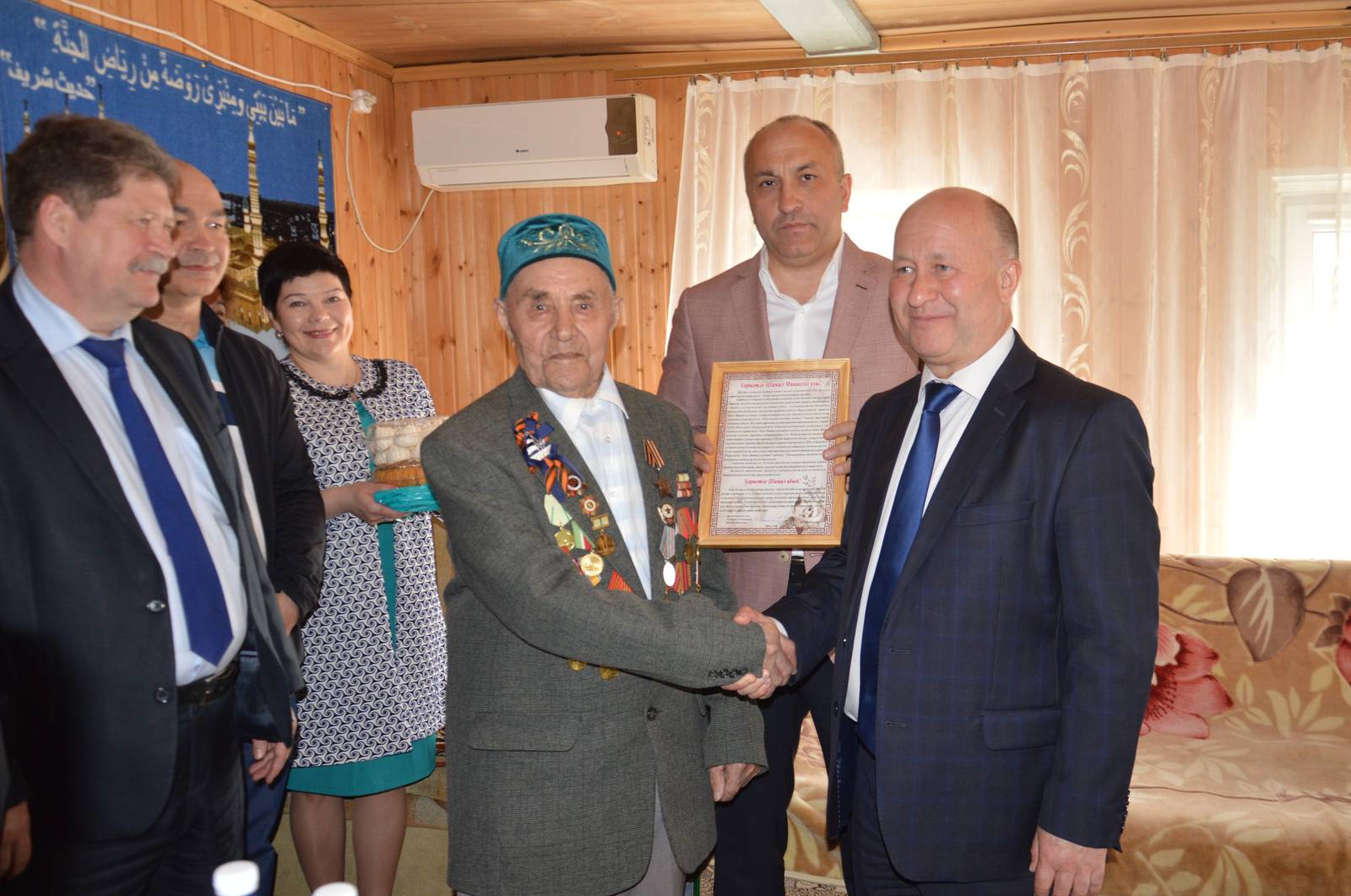 Прокурор Республики Татарстан И.С.Нафиков, Глава Азнакаевского муниципального района М.З.Шайдуллин и прокурор Азнакаевского района РТ И.Ф.Назмиев поздравили с 93-летием участника ВОВ Усманова Шамиля Миннегуловича