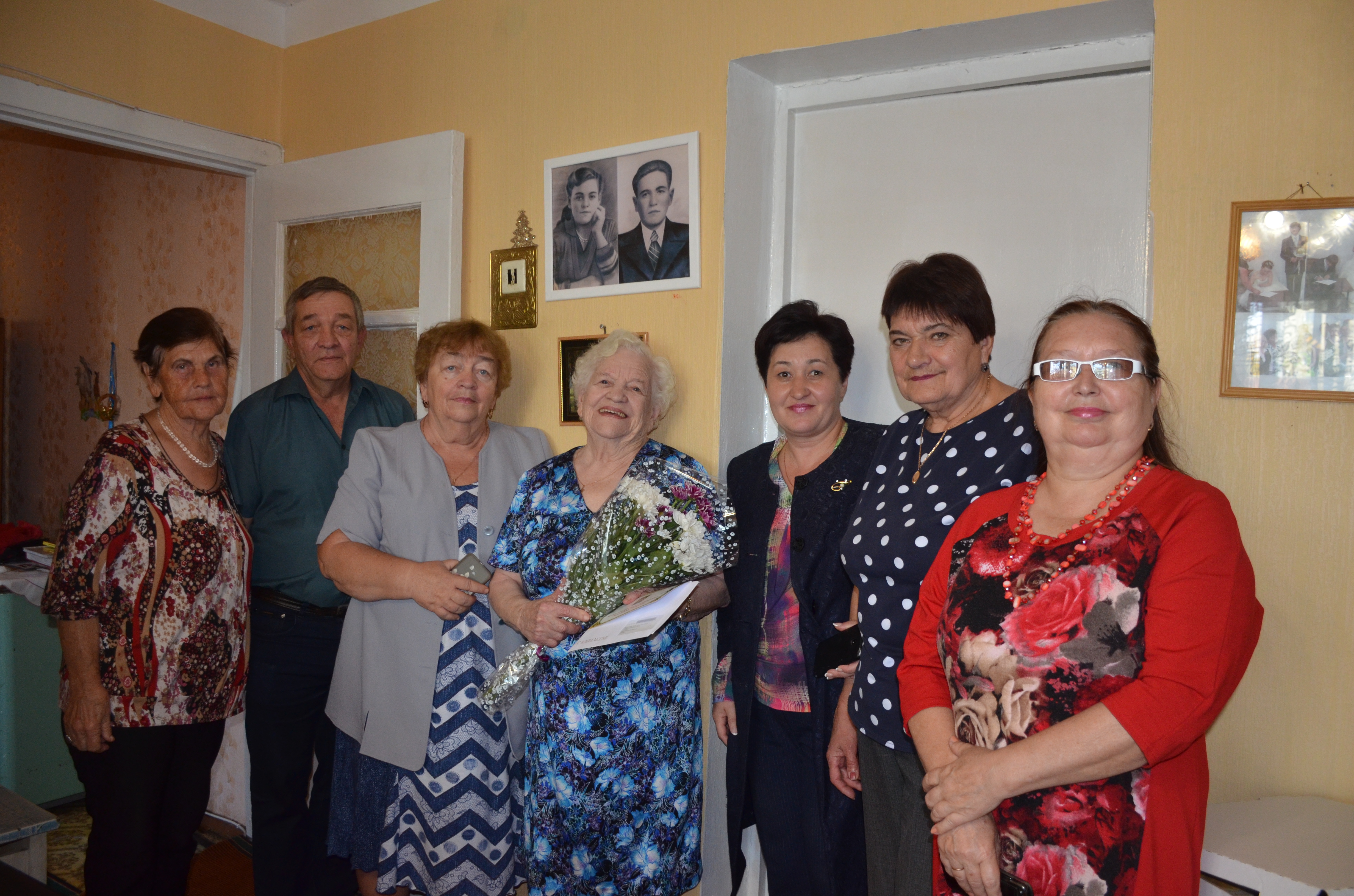 В этот день дверь юбиляра не закрывалась. С утра шел поздравить ее народ. Путинское поздравление и подарок от районного руководства передала заместитель руководителя исполнительного комитета Агрызского муниципального района Гильмутдинова Римма Ринатовна. Приходили поздравить из совета ветеранов железнодорожного узла и узловой больницы. Глава Агрызского муниципального района Макаров Валерий Владимирович поздравил ее по телефону.