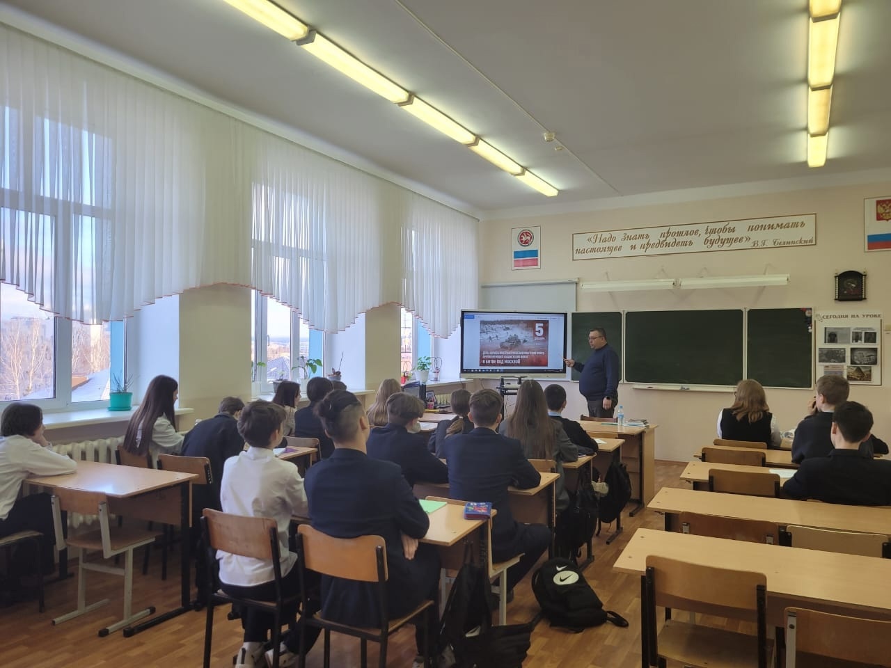 5 декабря в МАОУ «СОШ №7» прошло мероприятие, посвященное важной дате Великой Отечественной войны – началу контрнаступления советской армии под Москвой. Разговор об одном из ключевых эпизодов войныпомог учащимся узнать о мужестве и героизме защитников столицы.