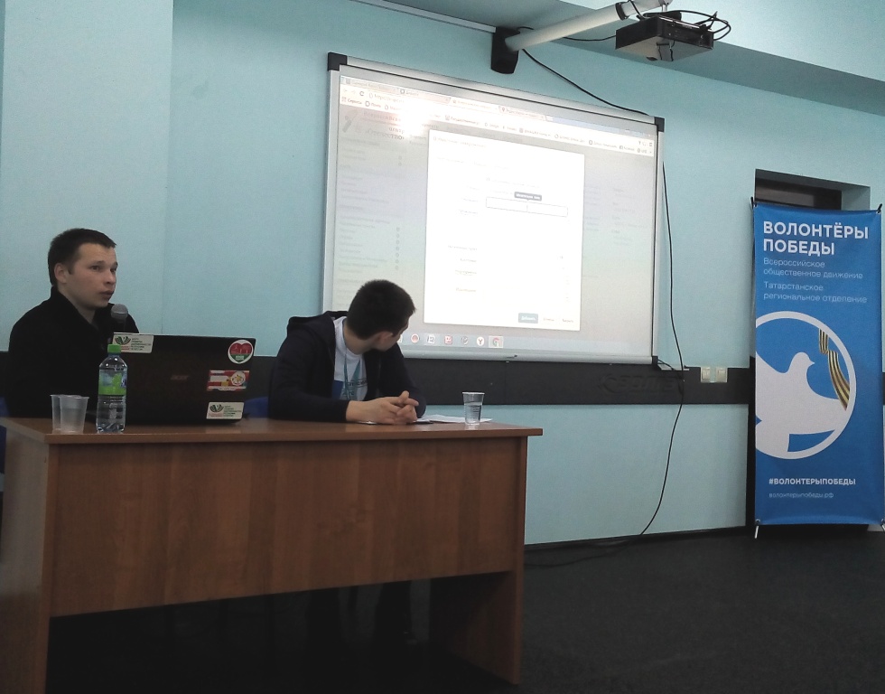С 27 по 29 марта 2016 года в МЦ «Волга» прошли Республиканские образовательные сборы «Волонтеры Победы». Организатором сбора является Региональная молодежная общественная организация «Центр развития добровольчества Республики Татарстан». Участниками смены стали более 80 добровольцев Татарстана из 30 муниципальных образований. На сборах все мероприятия были патриотической тематики: мастер-классы, интерактивные занятия, квест-игра «Дорогами бессмертного полка», брей-ринг «Ржевская битва», презентация добровольческой операции «Обелиск» совместно МОО «Отечество». Участники также посмотрели и обсудили художественный фильм «А зори здесь тихие». Руководитель Татарстанского отделения ВОД «Волонтеры Победы» Азат Идрисов презентовал Всероссийское общественное движение «Волонтеры Победы» участникам образовательного сбора. Делегат Спасского района стал Васильев Егор, учащийся Спасского Техникума отраслевых технологий и волонтер «Центр добровольческого движения Спасского района» Дома детского творчества.
