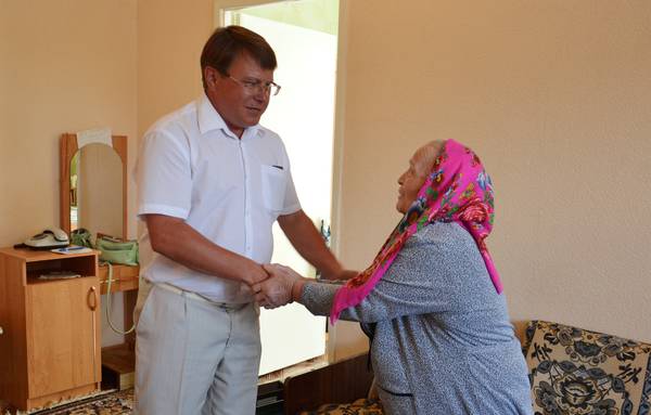 Руководитель аппарата Азнакаевского районного Совета А.Ф.Халиуллин поздравил с 90-летием Ахмадуллину Раису Ахмадулловну