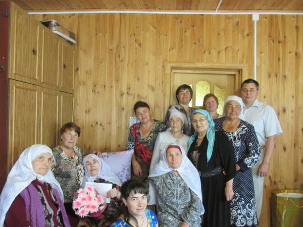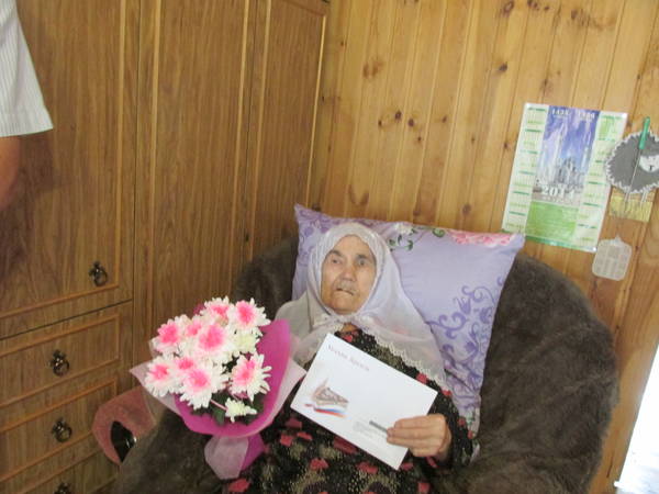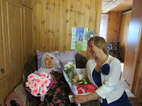 Они вручили персональное поздравление Президента РФ В.В. Путина, ценный подарок от имени главы района Рамиля Нутфуллина и памятные подарки.