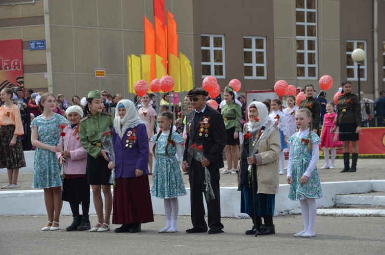 Когда руководители возлагали цветы к Вечному огню, исполнялись песни военных лет, проникновенные танцевальные номера, на лицах уважаемых ветеранов отражалась грусть. Наверное, в эти минуты они вспоминали свое далекое детство и юность, украденные войной. А может, мысленно желали поющим и танцующим детям, одетым в яркие наряды, самого наилучшего в жизни.