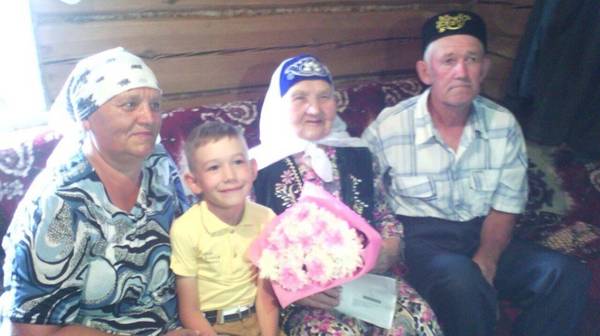 От имени Президента РФ В.В.Путина долгожителя поздравили: заместитель руководителя Балтасинского исполнительного комитета Ильгам Гайнутдинов, директор КЦСОН «Наз» Гульнара Ахмадиева, глава Ципьинского сельского поселения Азат Нотфуллин, председатель ООО «Арбор» Хамит Баязитов с последнего места работы и представители СМИ.