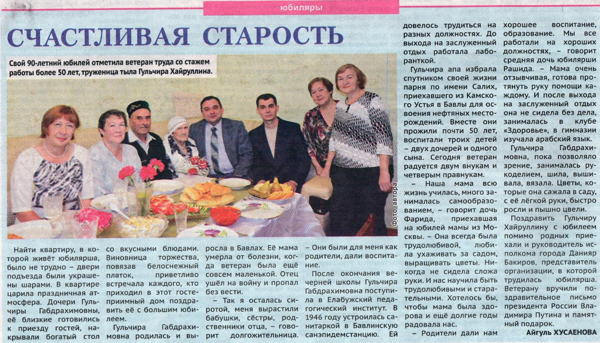 Свой 90-летний юбилей отметила ветеран труда со стажем работы более 50 лет, труженица тыла Гульчира Хайруллина.