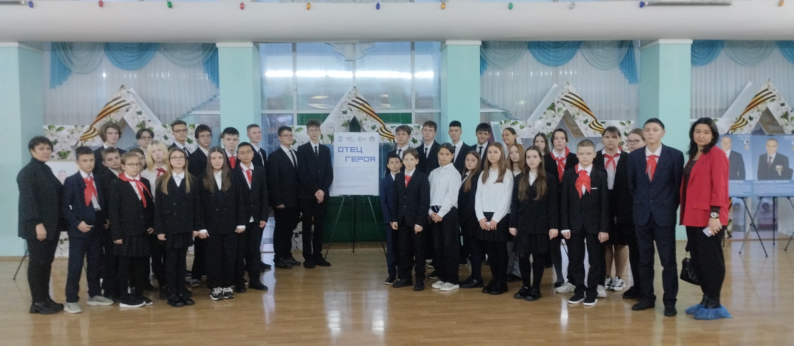 Сегодня ученики 6 Г и 9 Г средней школы № 3 посетили передвижную выставку "Отец Героя"