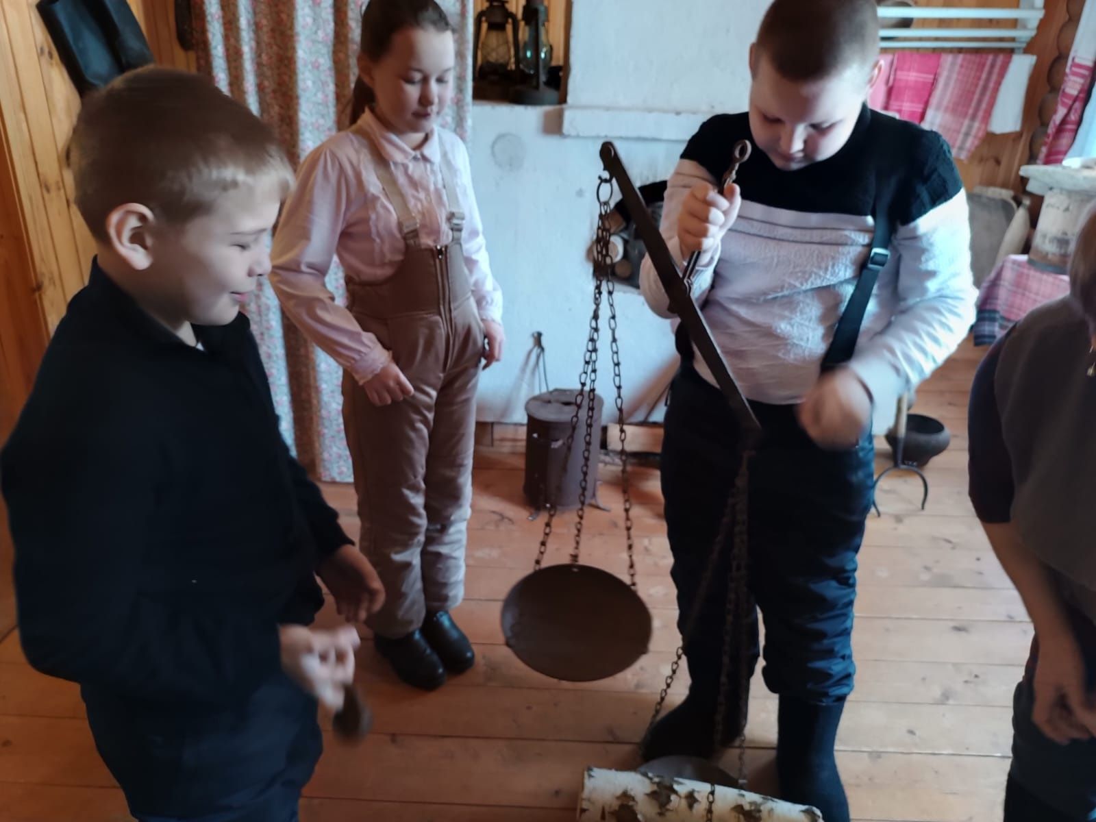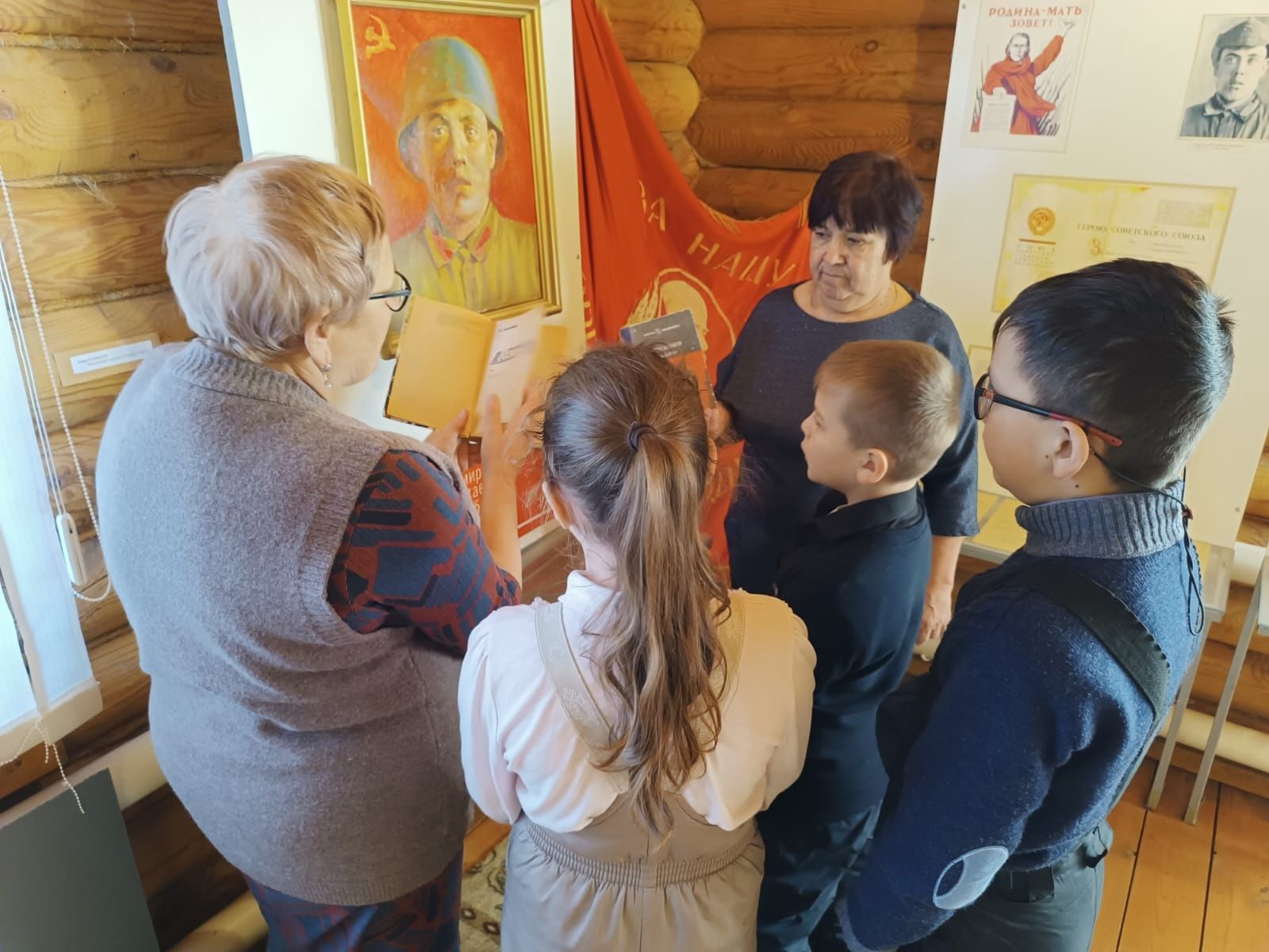 Экскурсоводы рассказали о сайтах, на которых можно искать своих предков, пропавших во время войны. Беседа продолжилась в комнате быта, где дети познакомились с внутренним убранством домов своих прабабушек и прадедов. В конце мероприятия дети возложили венок к бюсту героя.