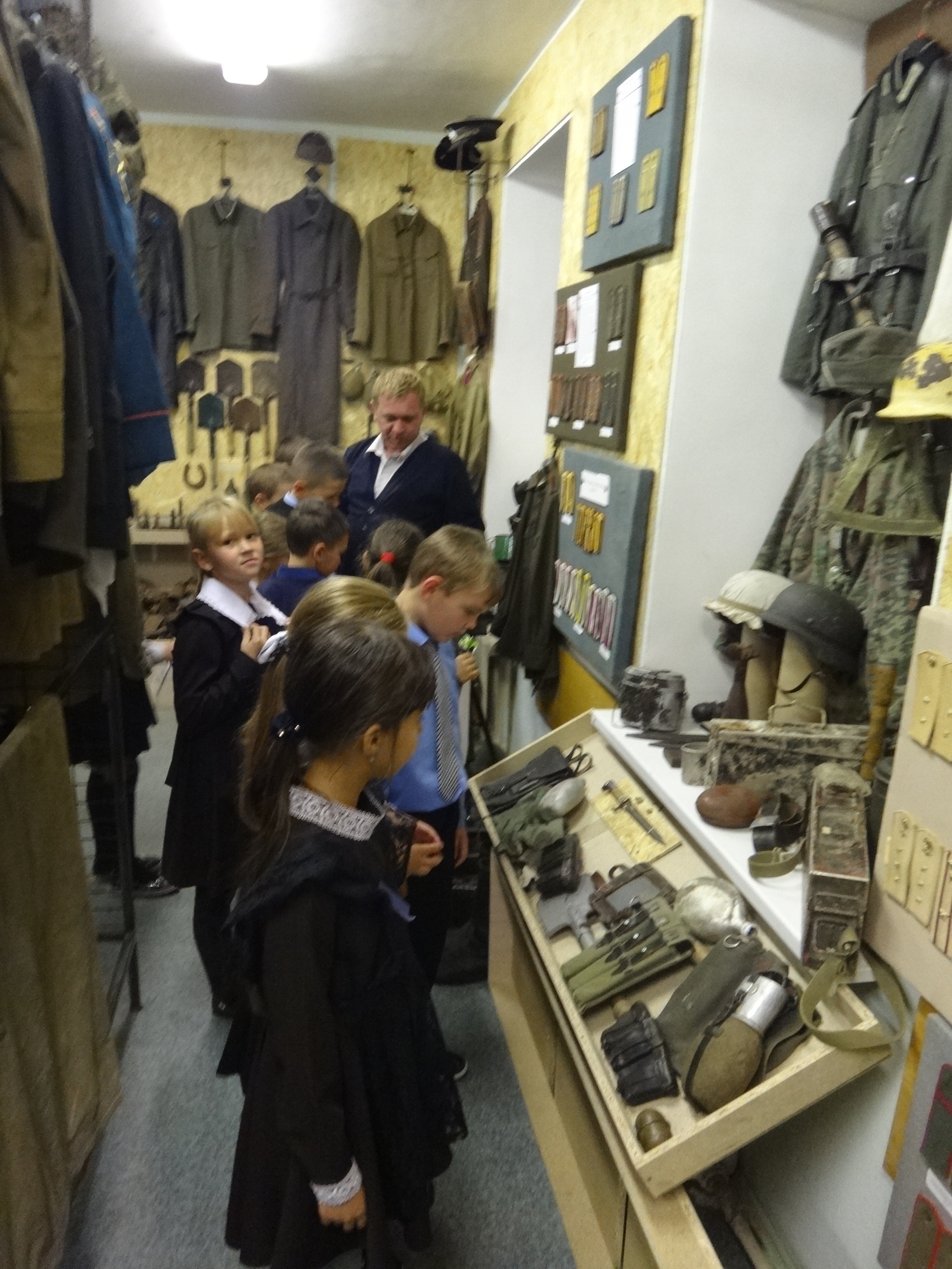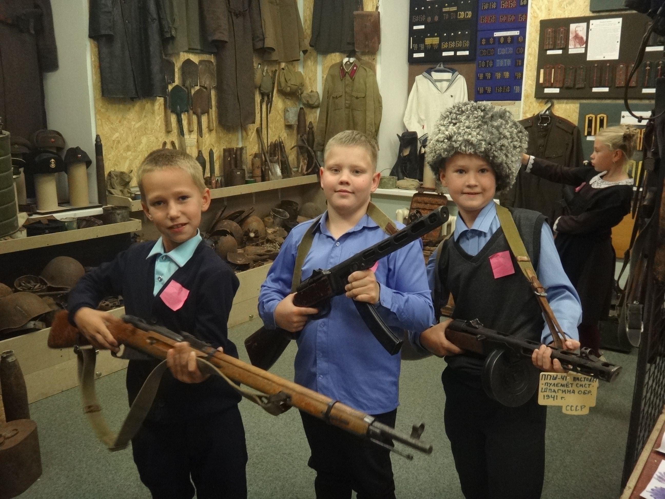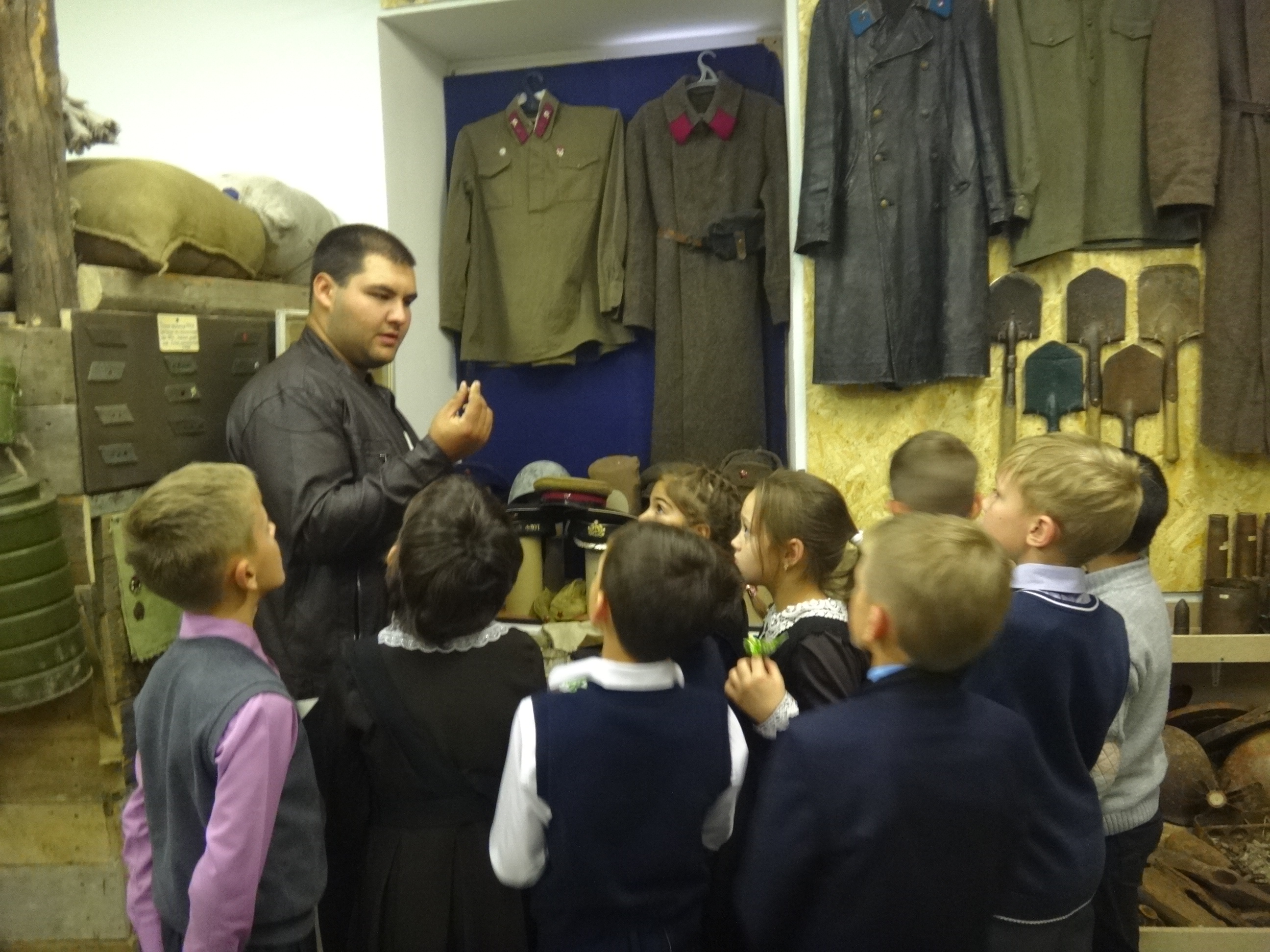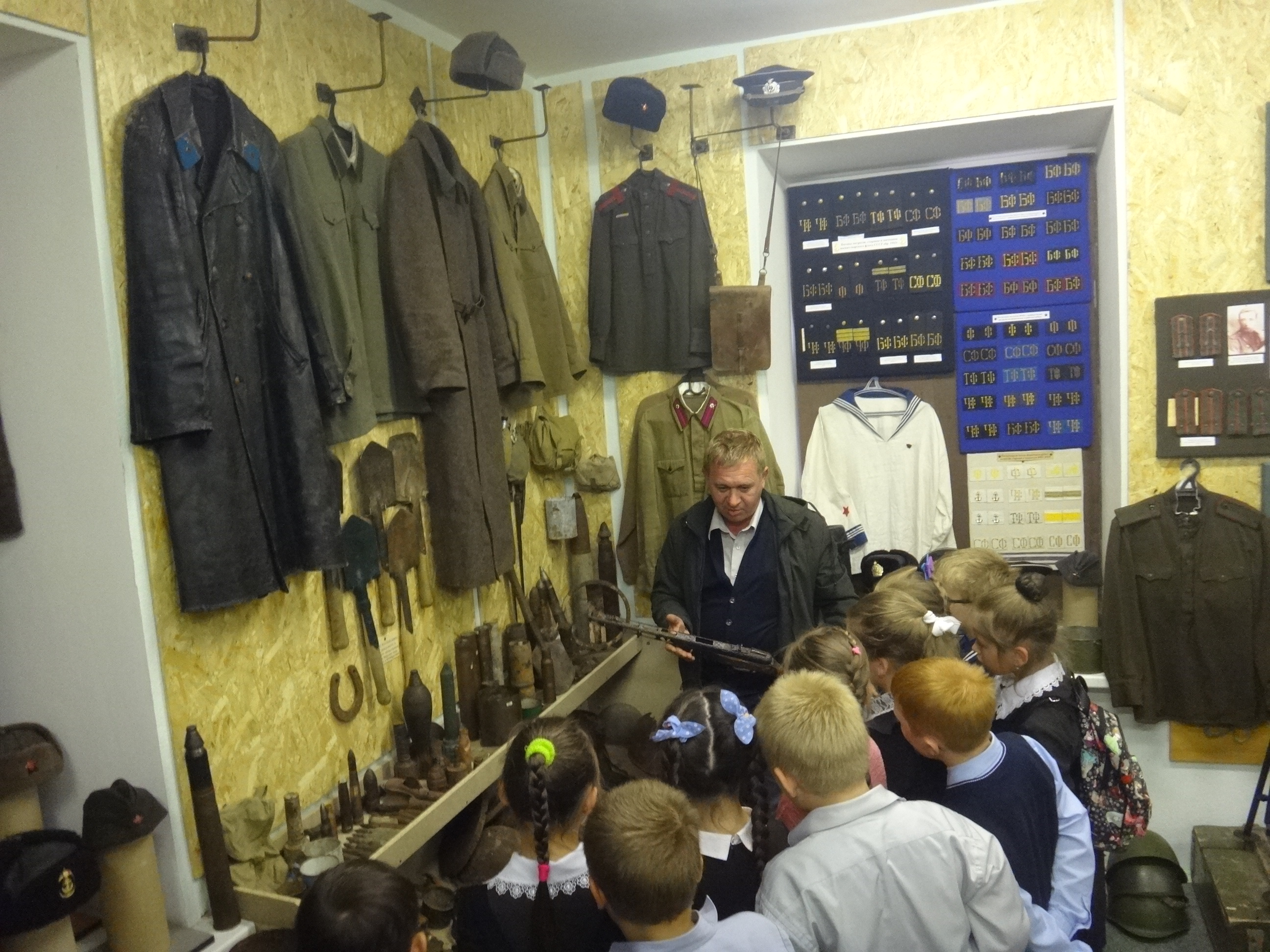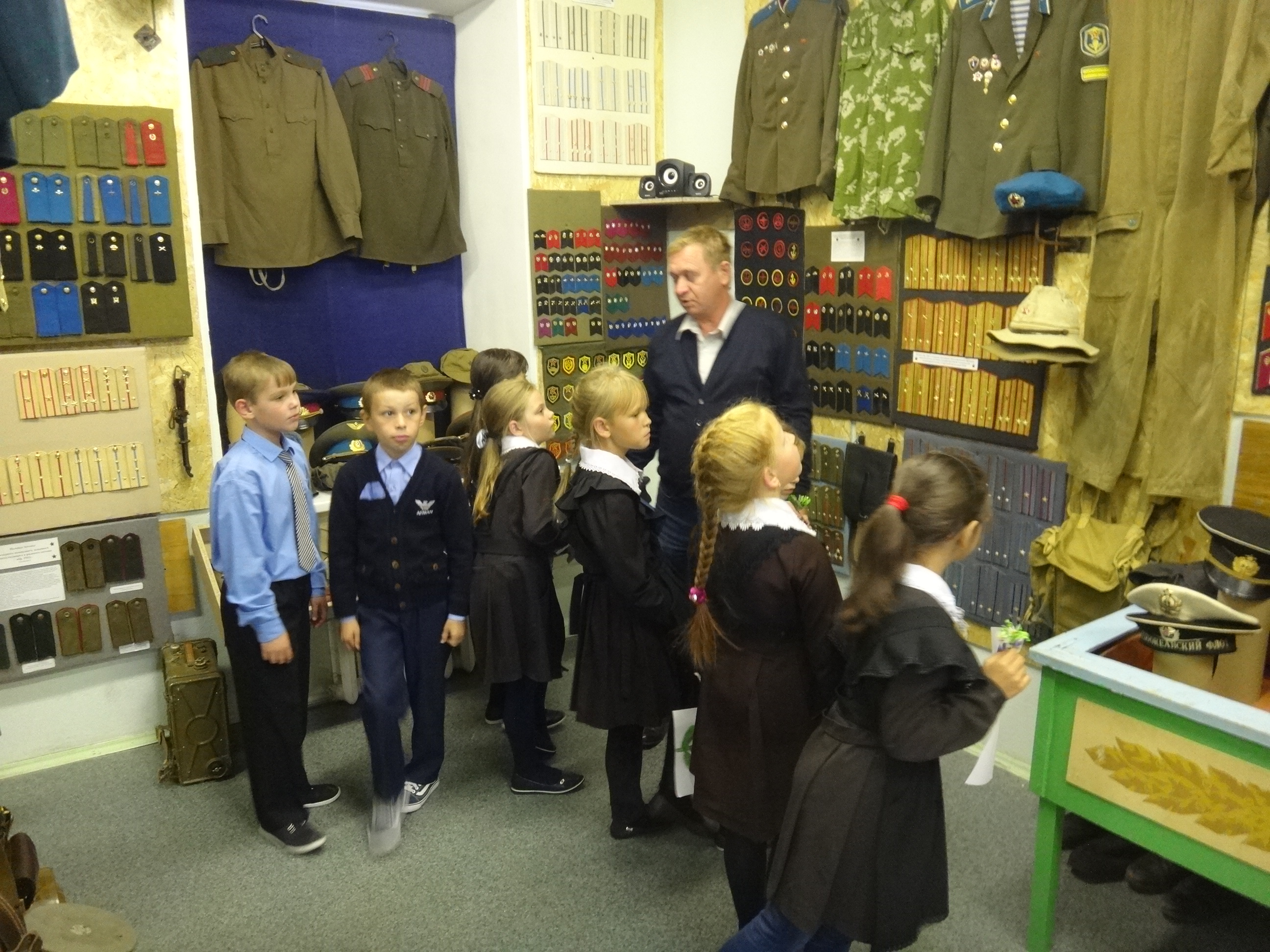 27 сентября музейную комнату военно-исторического клуба "Звезда" при Алексеевском Центре детского творчества посетили сразу 5 групп учащихся начальных классов Алексеевской средней школы №2. Для каждой группы была проведена своя небольшая экскурсия, рассказывающая о целях и задачах работы клуба, знакомящая с основными разделами и наполнением экспозиции. Дети с увлечением знакомились с уникальными экспонатами военной тематики, многие из которых были реальными свидетелями Гражданской и Великой Отечественной войн. Интерактивность музея предоставляет возможность детям самим прикоснуться к истории и подержать в руках практически любые экспонаты, а кое-что даже примерить на себя. Особой популярностью, как всегда, пользовались макеты стрелкового вооружения периода Великой Отечественной войны. Всего в этот день музейную комнату посетили около 70 учащихся в сопровождении своих преподавателей.