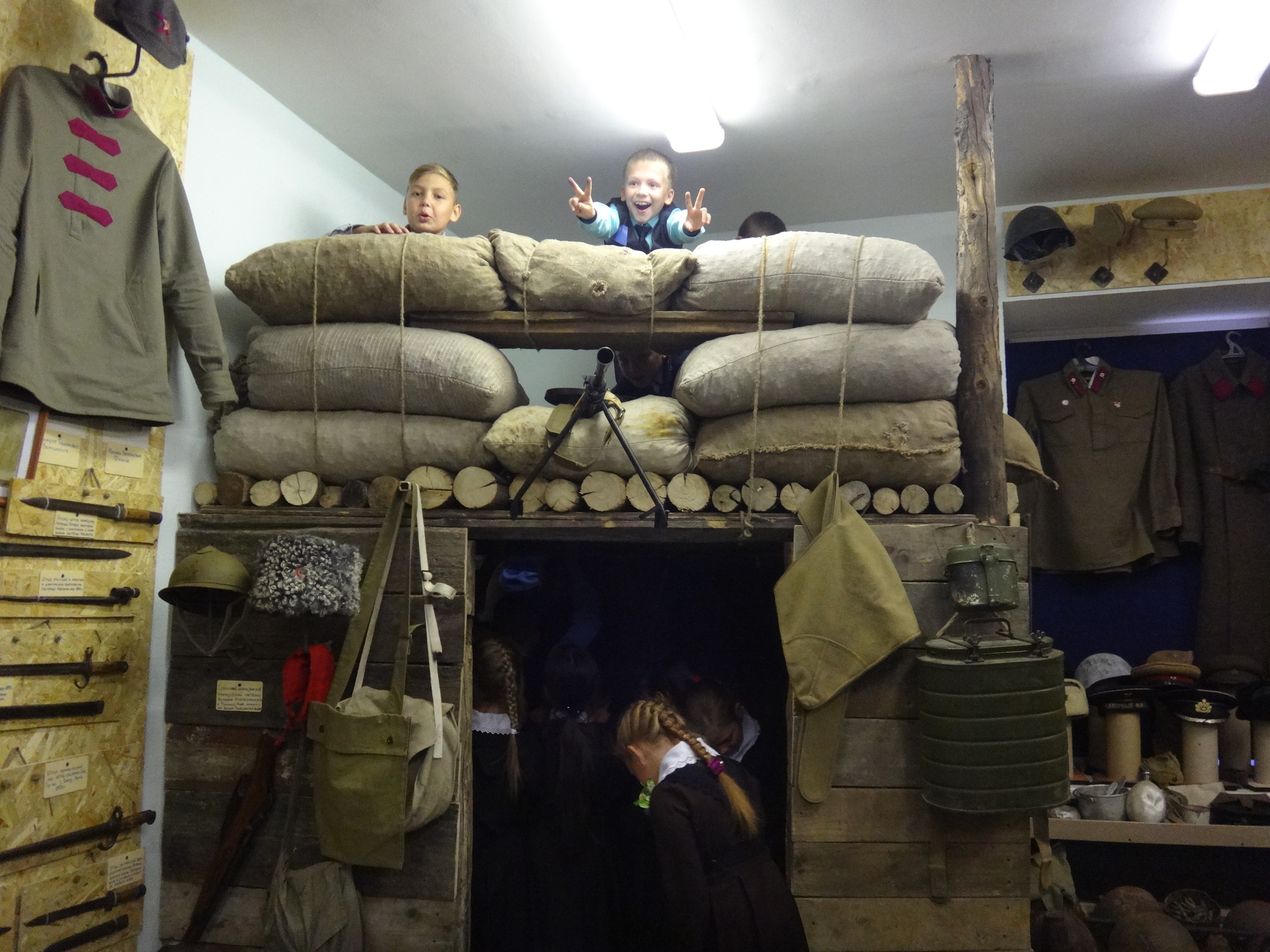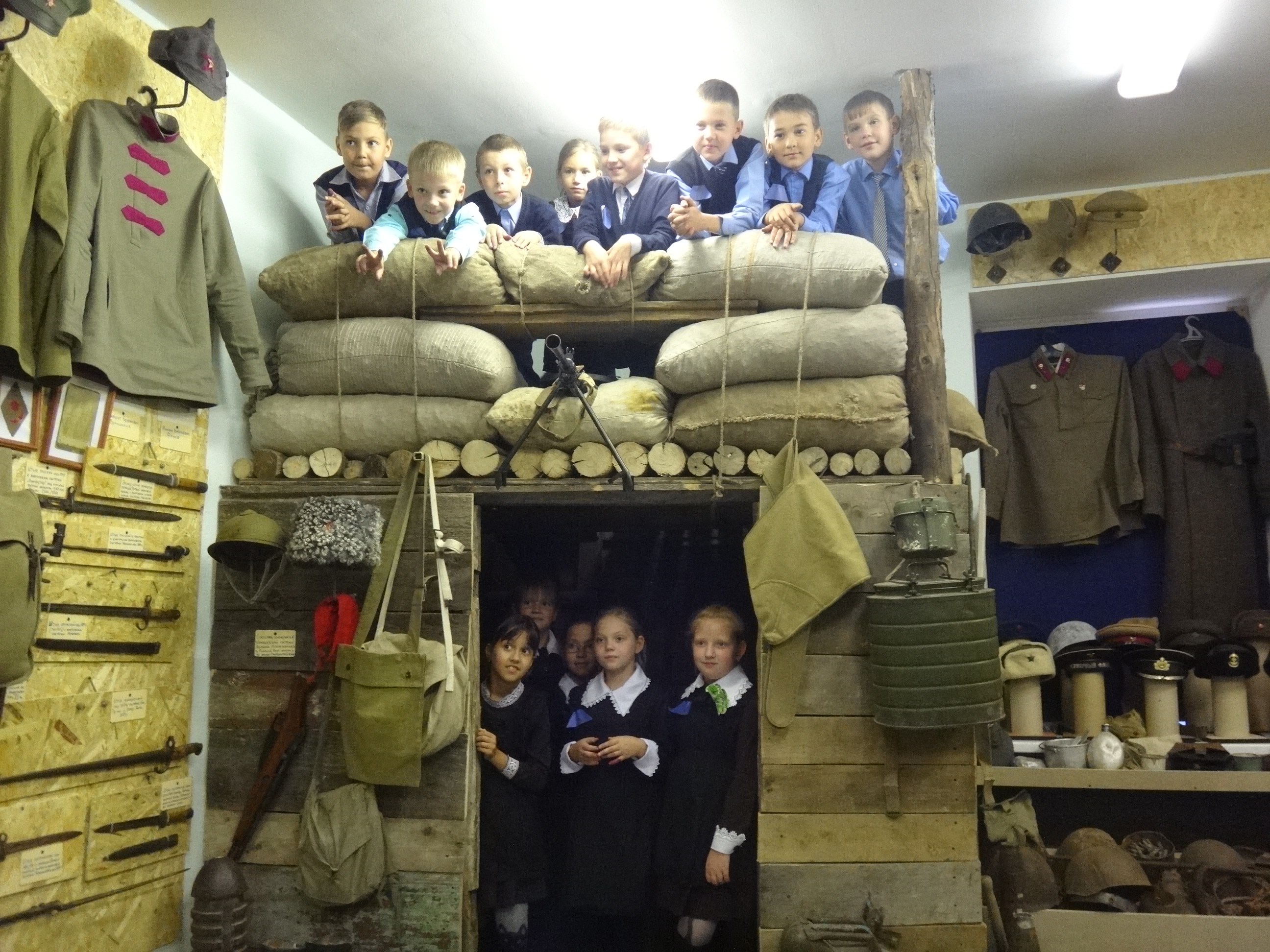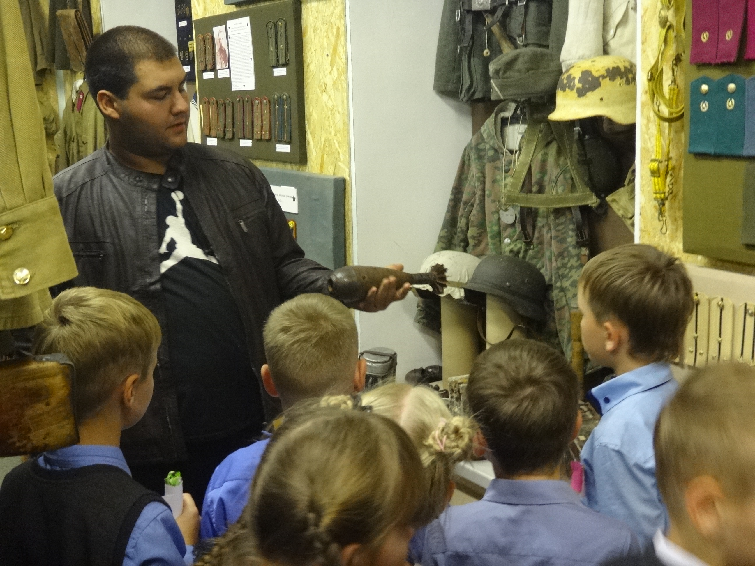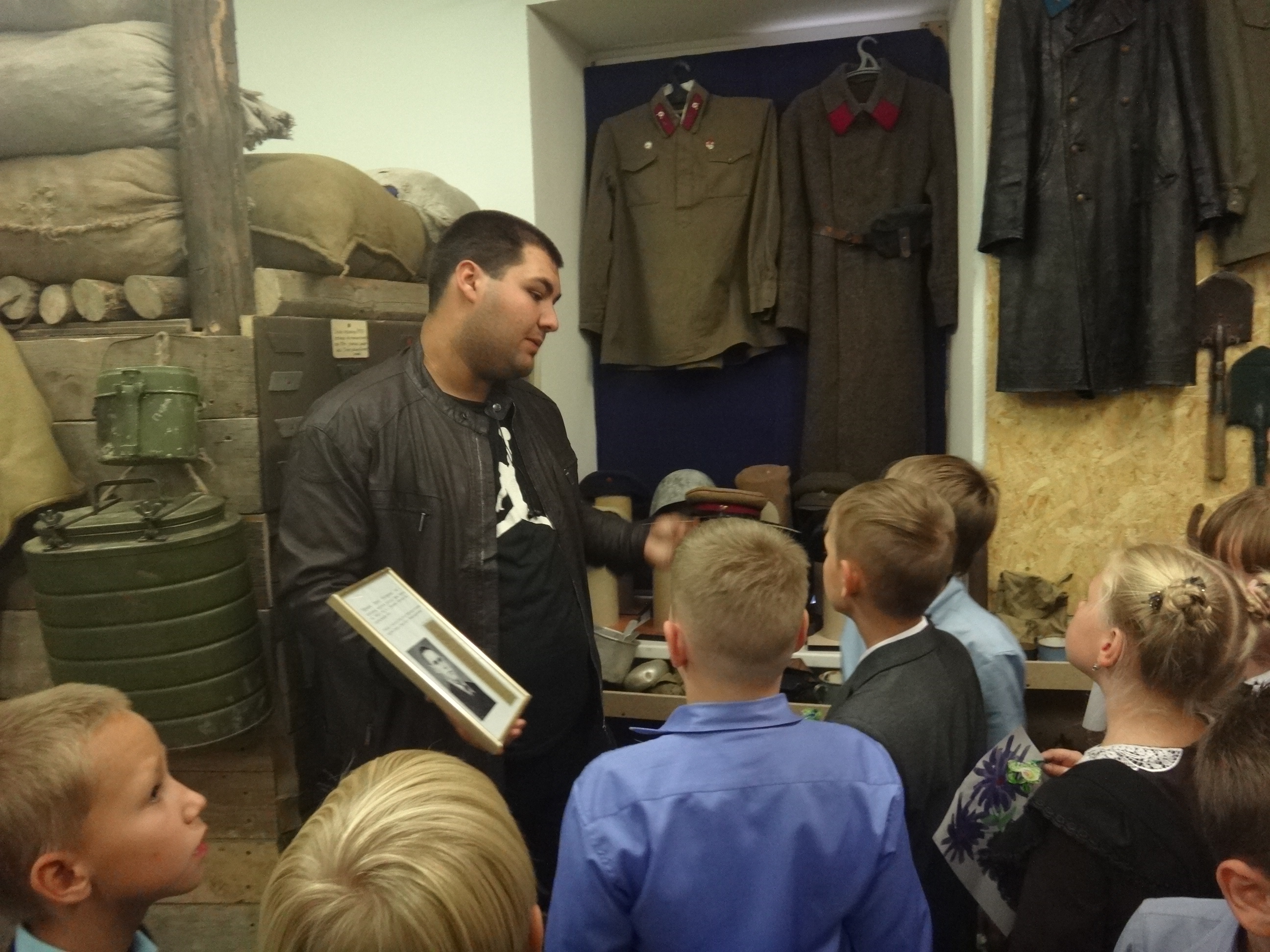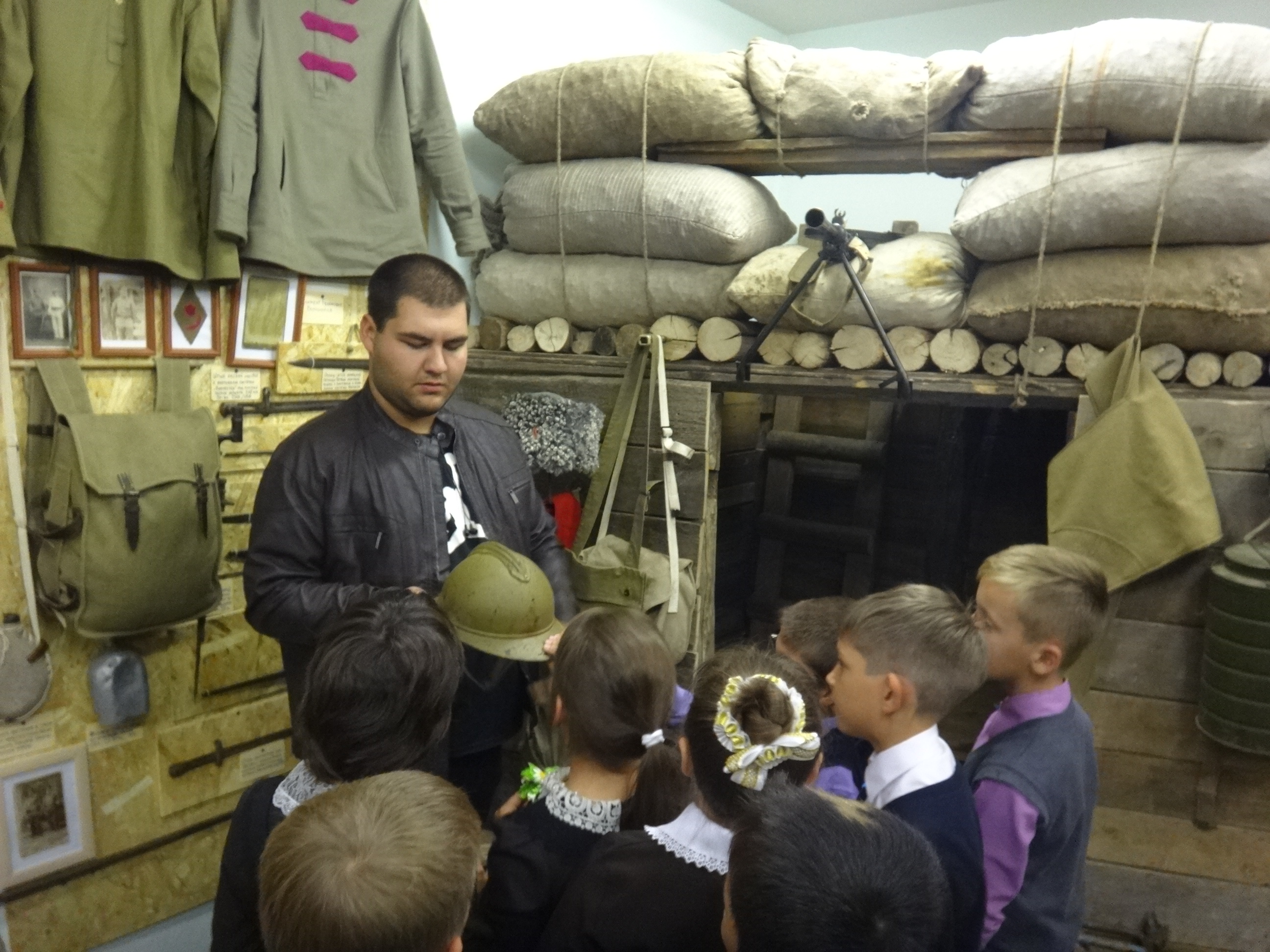 27 сентября музейную комнату военно-исторического клуба "Звезда" при Алексеевском Центре детского творчества посетили сразу 5 групп учащихся начальных классов Алексеевской средней школы №2. Для каждой группы была проведена своя небольшая экскурсия, рассказывающая о целях и задачах работы клуба, знакомящая с основными разделами и наполнением экспозиции. Дети с увлечением знакомились с уникальными экспонатами военной тематики, многие из которых были реальными свидетелями Гражданской и Великой Отечественной войн. Интерактивность музея предоставляет возможность детям самим прикоснуться к истории и подержать в руках практически любые экспонаты, а кое-что даже примерить на себя. Особой популярностью, как всегда, пользовались макеты стрелкового вооружения периода Великой Отечественной войны. Всего в этот день музейную комнату посетили около 70 учащихся в сопровождении своих преподавателей.