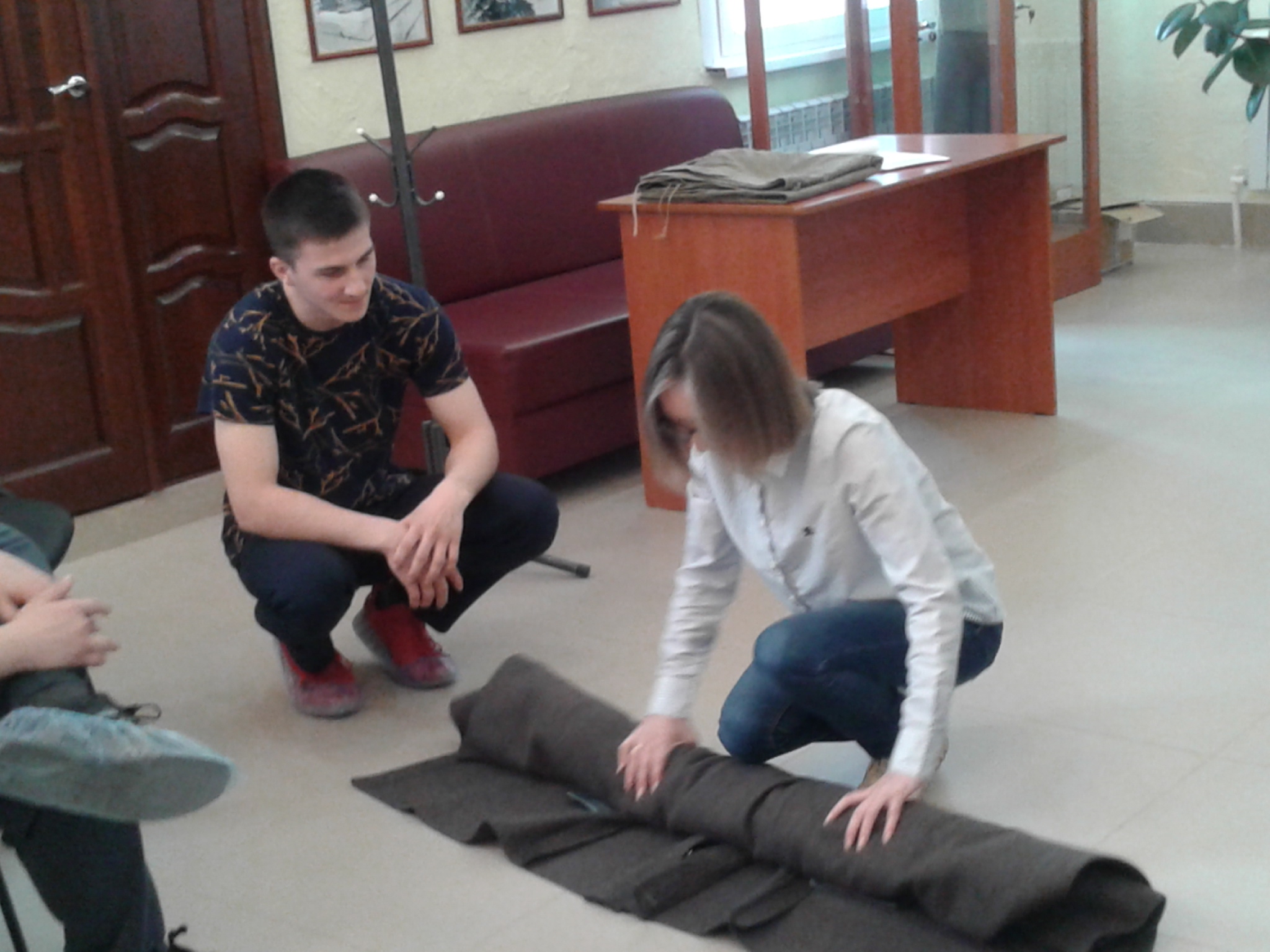 27 апреля в Мемориальном центре прошло мероприятие «Солдатский быт в годы Великой Отечественной войны» для учащихся Беркет – Ключевской средней общеобразовательной школы. Во время мероприятия ребята узнали, чем занимались бойцы в короткие минуты передышки, во время солдатского привала. Учащимся рассказали о заветных солдатских треугольниках, о солдатском медальоне, плащ-палатке, научили делать скатку из шинели.