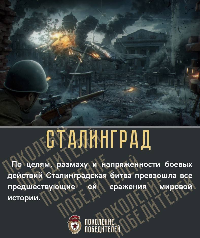17 июля 1942. Началась Сталинградская битва. Двести дней и ночей на берегах Дона и Волги, а затем у стен Сталинграда и непосредственно в самом городе продолжалась эта ожесточенная битва. Она развернулась на огромной территории площадью около 100 тыс. кв. км при протяженности фронта от 400 до 850 км. Участвовало в этой грандиозной битве с обеих сторон на разных этапах боевых действий свыше 2,1 млн человек. По целям, размаху и напряженности боевых действий Сталинградская битва превзошла все предшествующие ей сражения мировой истории.