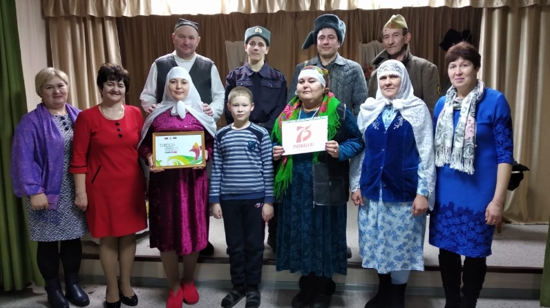 В рамках 75-летия Великой Победы народный театральный коллектив Старокарамалинского СДК выступил с пьесой В.Нуриева "Эт тырнагы" перед зрителями деревни Новые Карамалы.