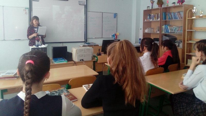 Сотрудники Центральной библиотеки Камско-Устьинского муниципального района провели урок мужества «Страницы той страшной войны» для учащихся 7 «А» класса МБОУ «Камскоустьинская СОШ» (классный руководитель А.Г. Ибатуллина).