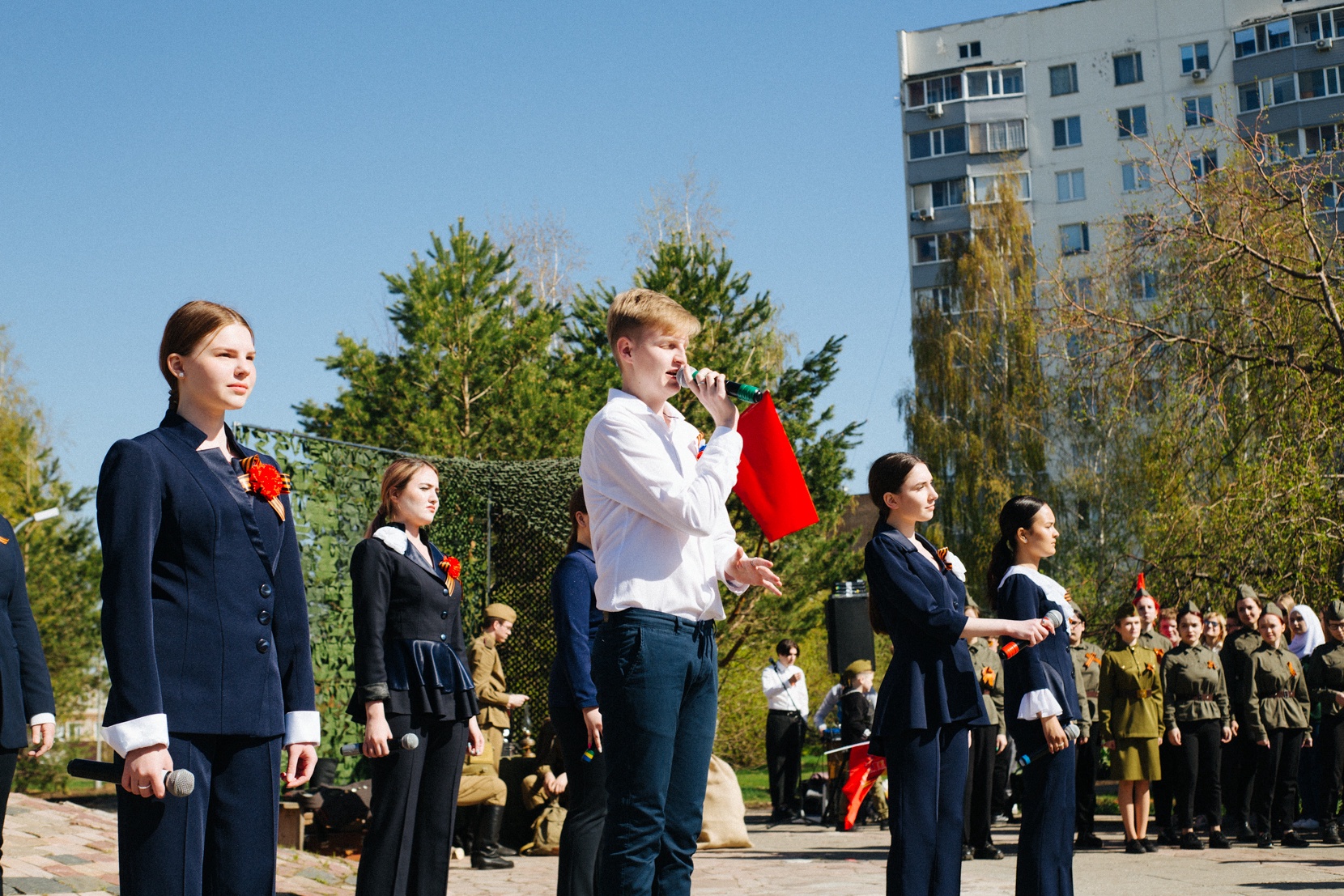 В ходе праздничного мероприятия прозвучали музыкальные произведения на стихи Мусы Джалиля, песня «Тишина» в исполнении солистов вокальной студии «Шарм», песня «О той весне кино идёт» в исполнении хорового коллектива «Батутта», а также другие творческие номера.