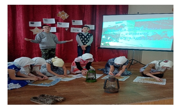 В ходе мероприятия юные читатели просмотрели электронную презентацию о судьбах женщин- тыловиков во время Великой Отечественной войне, инсценировали труд сельских женщин в тылу. Библиотекарь дала информацию о труженицах тыла села Татарские Шатрашаны, которые рыли окопы, участвовали при строительстве железных дорог, работали трактористами в родном колхозе.