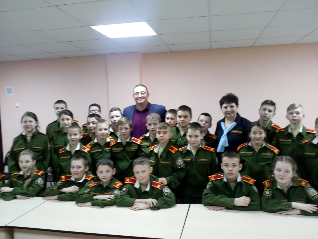 Затем встреча была продолжена в кабинете. Наш гость пообщался с кадетами младших классов. Беседа Александра Вячеславовича никого не оставила равнодушным и глубоко запала в сердце каждого слушателя, напомнив нам еще раз, что мы являемся правнуками Победителей над фашизмом и Великая Победа будет всегда с нами. Каждый из нас должен знать историю своего народа, ведь ее забвение грозит повторением прошлых ошибок. Александр Вячеславович Лапко выразил надежду, что дети усвоят уроки Великой Отечественной войны раз и навсегда, чтобы у них не осталось ни единого повода для сомнений, что это НАША Победа. Победа, завоеванная ценою миллионов жизней. И нет иной истории кроме той, которая была написана кровью наших дедов и прадедов.