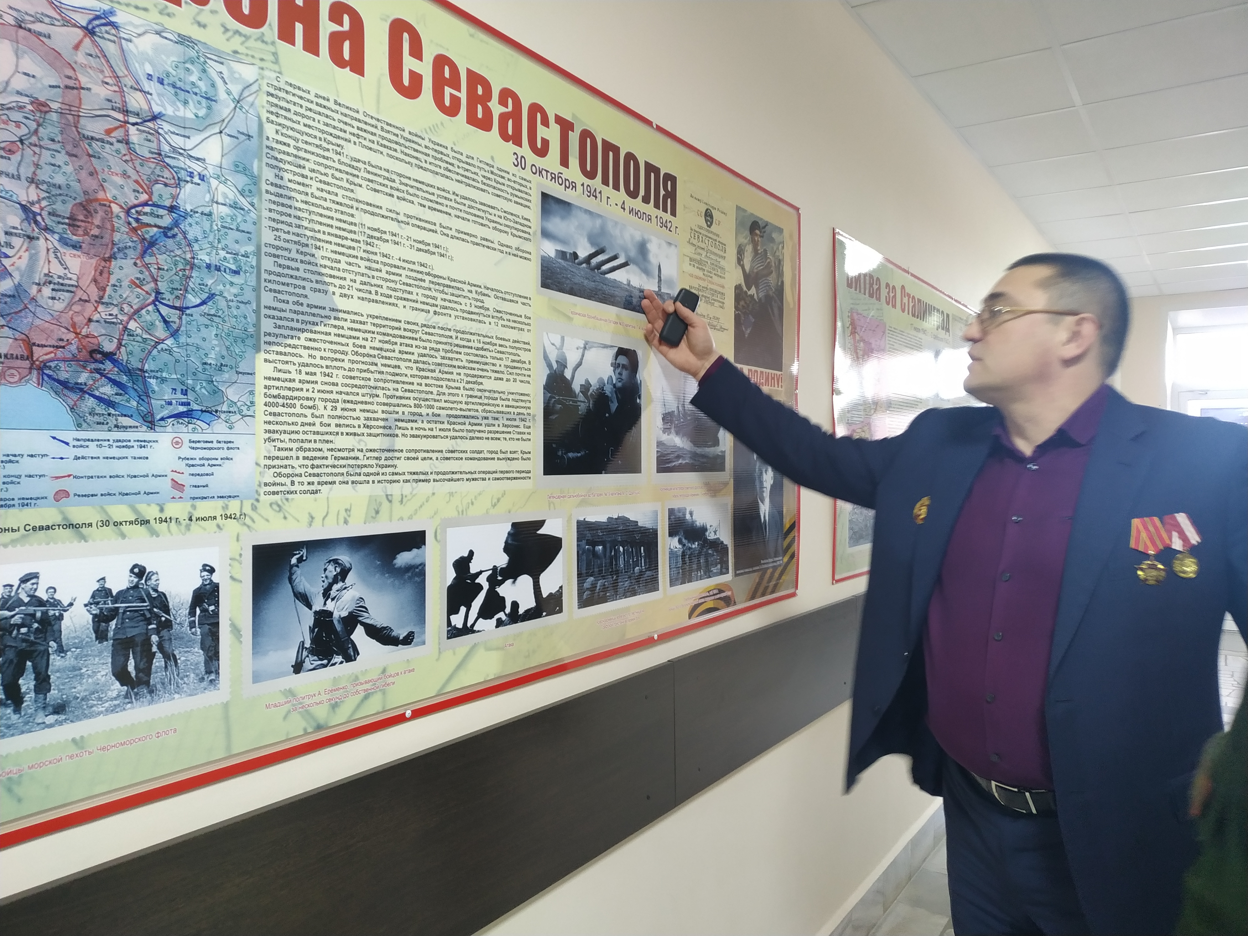 После торжественного момента открытия Галереи Боевой Славы все участники приступили к осмотру экспозиций. Это 19 ярких информативных стендов, размещенных на стенах второго этажа ГБОУ «Тетюшская кадетская школа-интернат», кратко и емко отображающие ключевые моменты Великой Отечественной войны. Стенды – это своего рода информация с доставкой, причем долгосрочного воздействия.