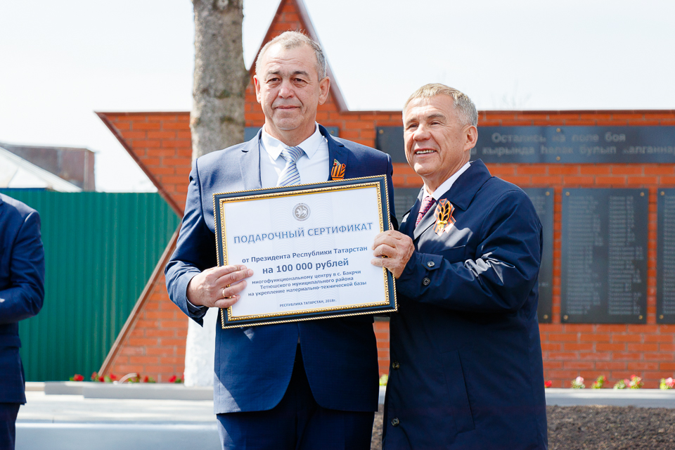 6 мая в селе Бакрчи Тетюшского муниципального района состоялось открытие мемориального комплекса «Вечная память землякам Защитникам Родины и труженикам тыла». В торжественной церемонии приняли участие полномочный представитель Президента РФ в ПФО Михаил Викторович Бабич, Президент Республики Татарстан Рустам Нургалиевич Минниханов, два Героя России - Глава Республики Ингушетия Юнус-бек Баматгиреевич Евкуров и начальник департамента региональной политики Управления по внутренней политике Администрации Президента РФ Алексей Викторович Романов, помощник Секретаря Совета Безопасности РФ Наиль Мансурович Мухитов, Глава Тетюшского муниципального района Рамис Хатыпович Сафиуллов.