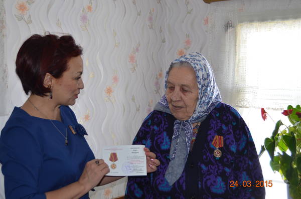 24.03.2015 Торжественное вручение юбилейных медалей "70 лет Победы в ВОВ 1941-1945гг." ветеранам ВОВ в пгт.Актюбинский Азнакаевского муниципального района