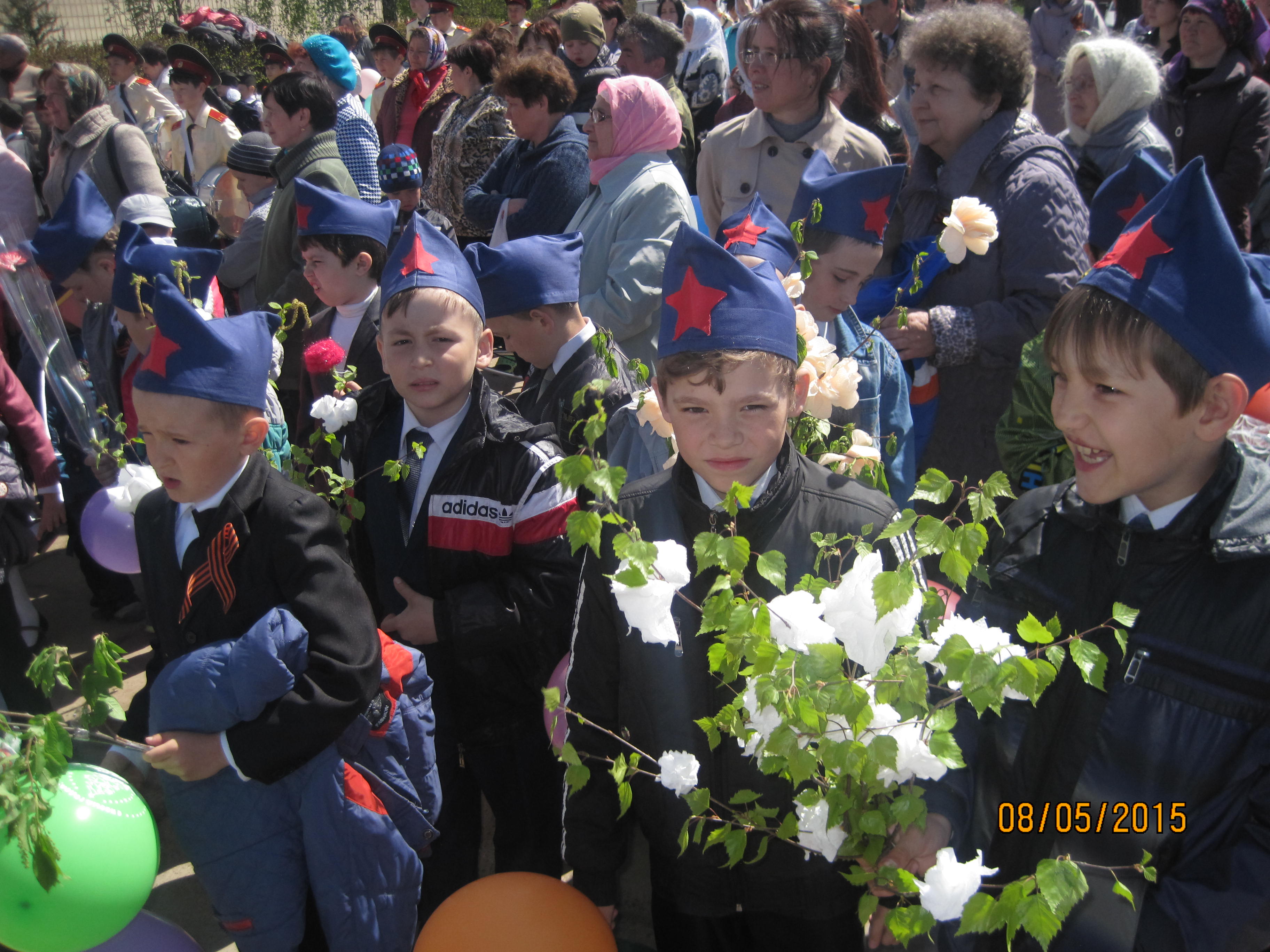 08.05.2015г. торжественное мероприятие, посвященное празднованию 70-летия Победы в Великой Отечественной войне 1941-1945г. в п.Новый началось с выступления кадетской группы СОШ п.Новый под руководством Федотова Павла Алексеевича. Слова поздравления и благодарности выразили Глава Азьмушкинского сельского поселения – Фазулзянов Марат Габделхаевич, председатель Профсоюзов Тукаевского муниципального района – Хайруллин Гумар Гайнуллович, руководитель ООО «Гигант» - Имамов Риф Ханифович, руководитель общественной организации воинов – интернационалистов сельского поселения – Майоров Александр Анатольевич, председатель Совета ветеранов – Абдуллина Нурия Рафкатовна, ветераны тыла – Ситдикова Фагима Ситдиковна, Нуруллина Мадина Зиятдиновна. Мероприятие проходило на празднично оформленной площади Дома культуры п.Новый. Выступление коллектива СОШ п.Новый началось с шествия «Бессмертного полка». Нарядно одетые учащиеся в синих пилотках, в красных галстуках, со цветами и шарами выстроились в «Живой коридор». Коллектив детского сада «Березка» поздравил ветеранов показательным выступлением «Дети России» и инсценированием стихотворения М. Джалиля «Кызыл ромашка». Праздник сопровождался выступлением ансамбля «Сююмбикэ» при ДК «Дуслык» и танцевального коллектива СОШ п.Новый. Особый тон добавили празднику патриотические песни Веретенникова Владимира Евгеньевича, дополненные салютом из шаров с белыми голубями. Была объявлена Минута молчания в честь погибших воинов.