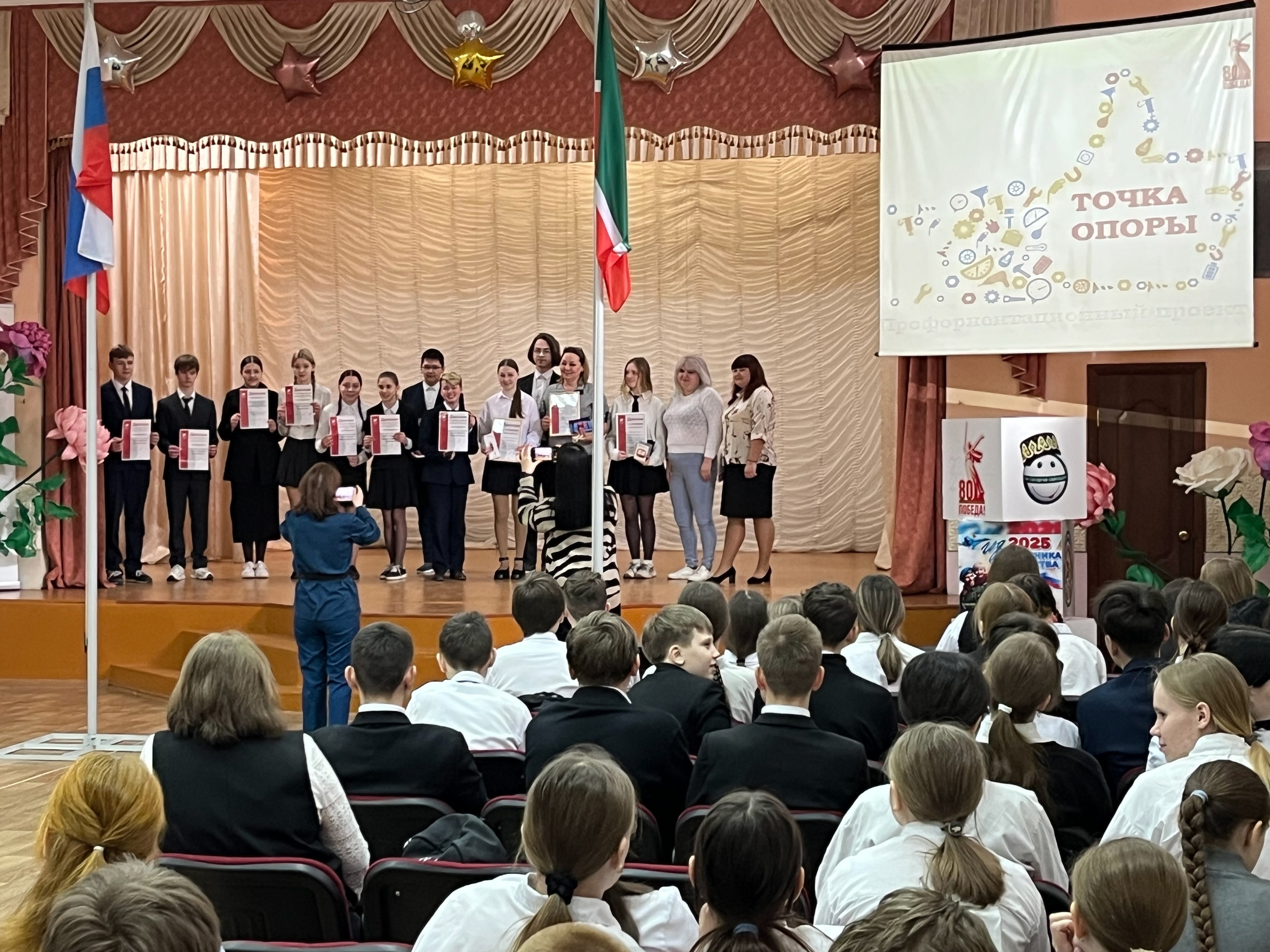 На нашей линейке присутствовали гости: Светлана Дементьева - заместитель начальника депо по работе с персоналом, начальник отдела по работе с персоналом СЛД "Бугульма" ООО СТМ-Сервис, Арина Дементьева - ведущий специалист по персоналу СЛД "Бугульма", председатель Совета молодежи ООО СТМ-Сервис, Наталья Мазитова - секретарь руководителя СЛД "Бугульма. Они вручили грамоты победителям и всем участникам конкурса сочинений, рисунков и видеороликов в рамках муниципальной целевой программы по профориентации "Ориентир - 2030".