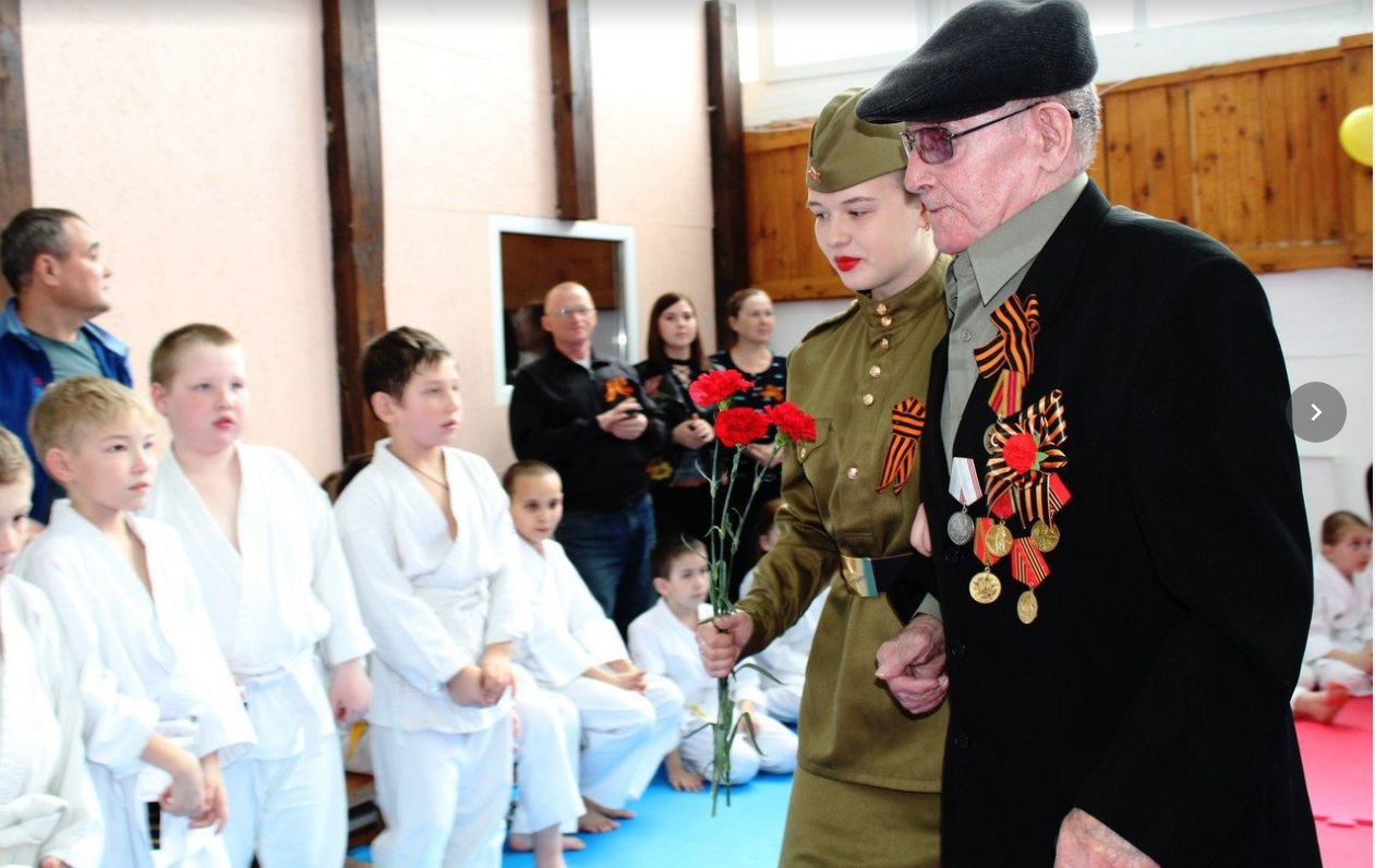 Участник Великой Отечественной войны Александр Иванович Попов, почётный гость турнира, пришел поприветствовать юных спортсменов, и был встречен аплодисментами.