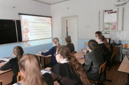 Классный руководитель С.Андреева продемонстрировала презентацию о женщинах – участницах Второй мировой войны Ребята узнали о роли женщин – санинструкторов, разведчиц, снайперов, ночных бомбардировщиц на фронте и в тылу, об их беспримерном мужестве и героизме.