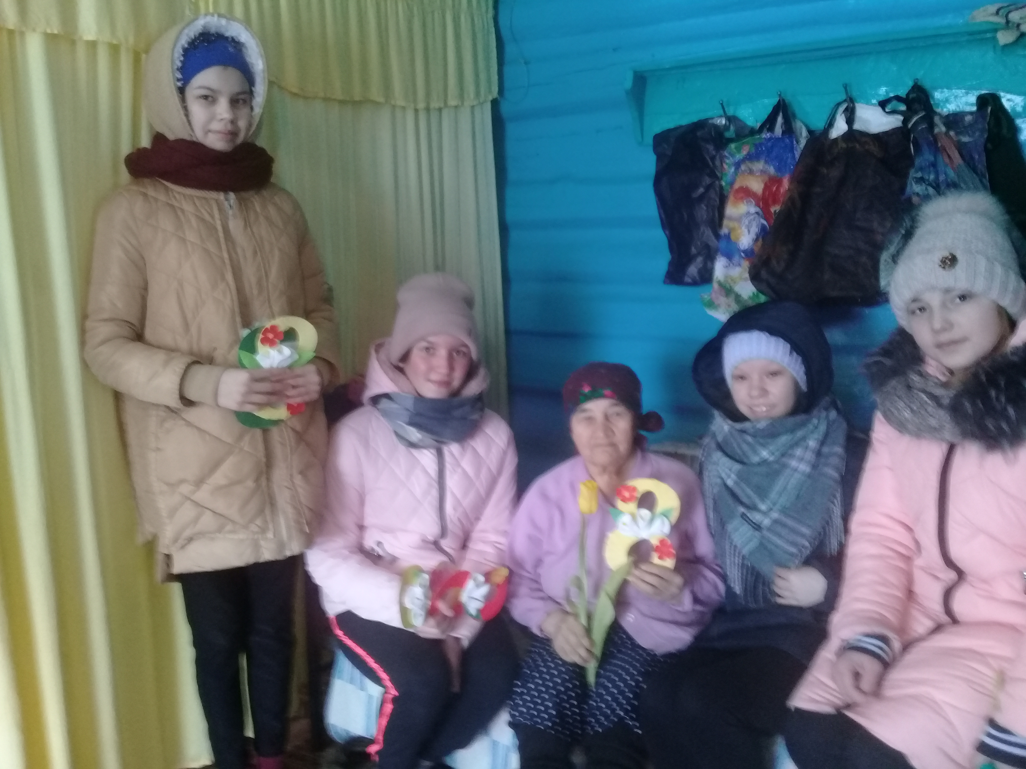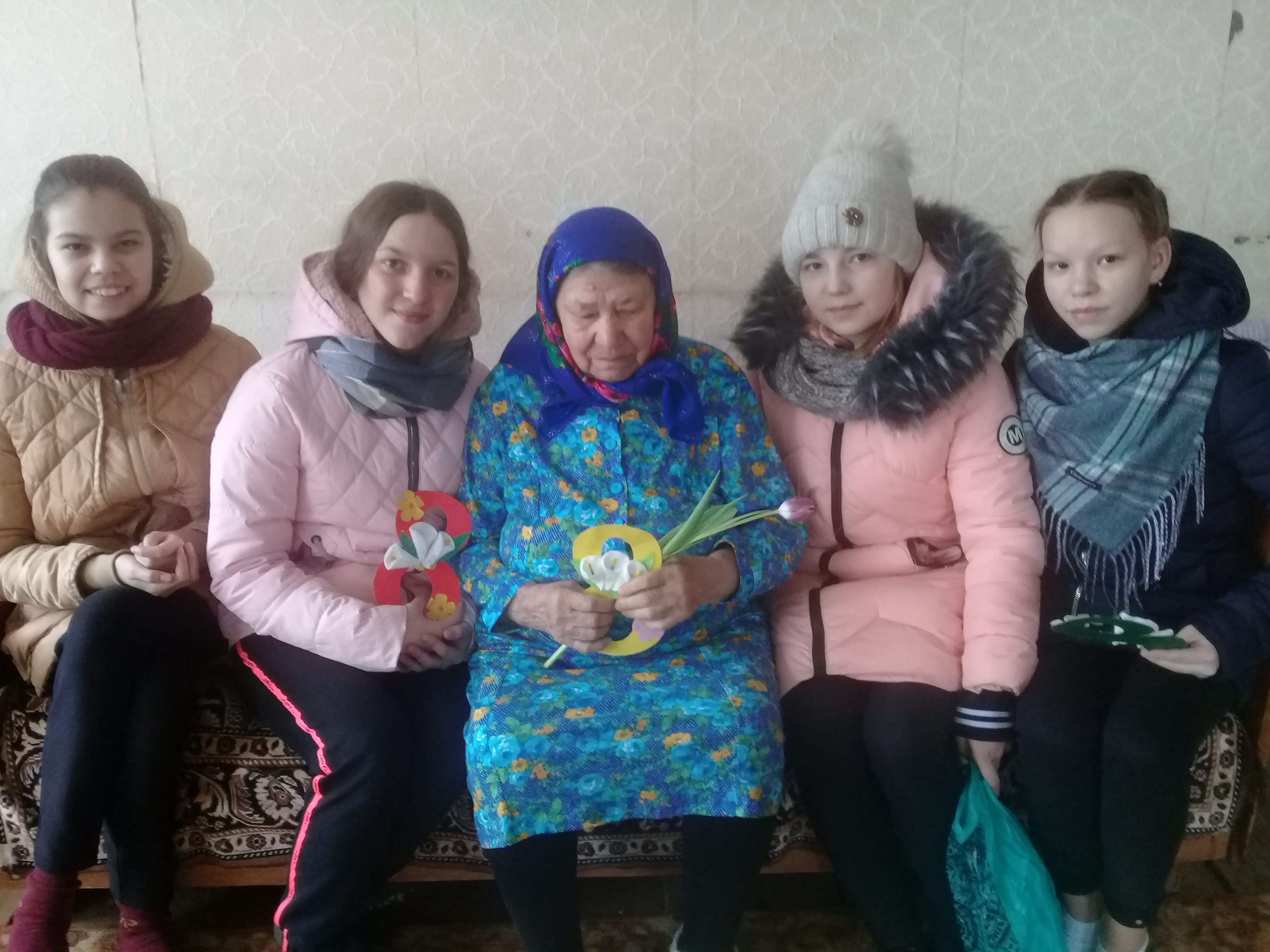 Учащиеся МБОУ "Ивашкинская СОШ" поздравили женским днем престарелых бабушек, категории "Дети- войны".