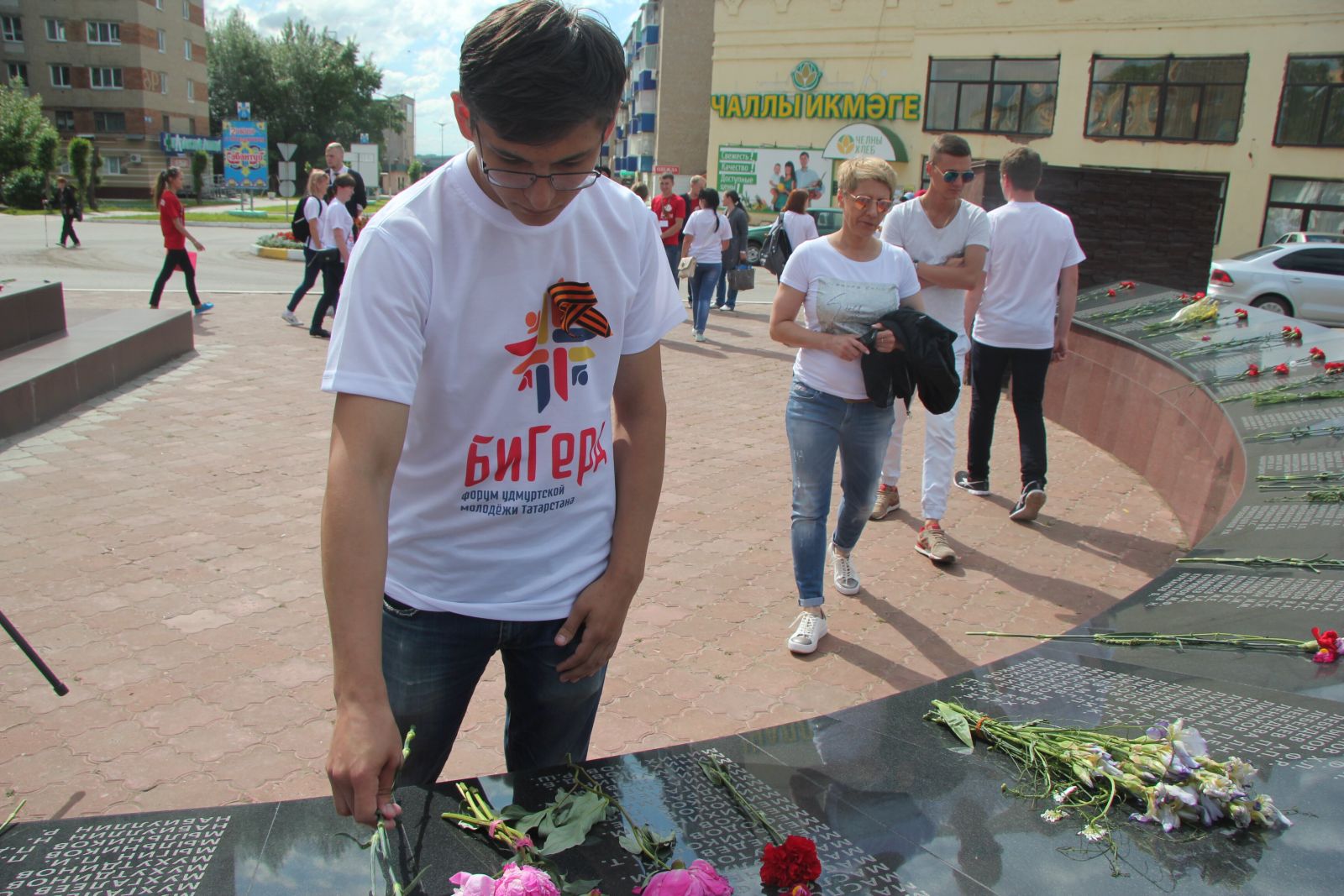 В первый же день форума его участники посетили мемориал Великой Отечественной войны в Менделеевске, аллею Героев, ознакомились с историей нашего края, его славными страницами, узнали о героях-бондюжцах и возложили цветы к мемориалу.